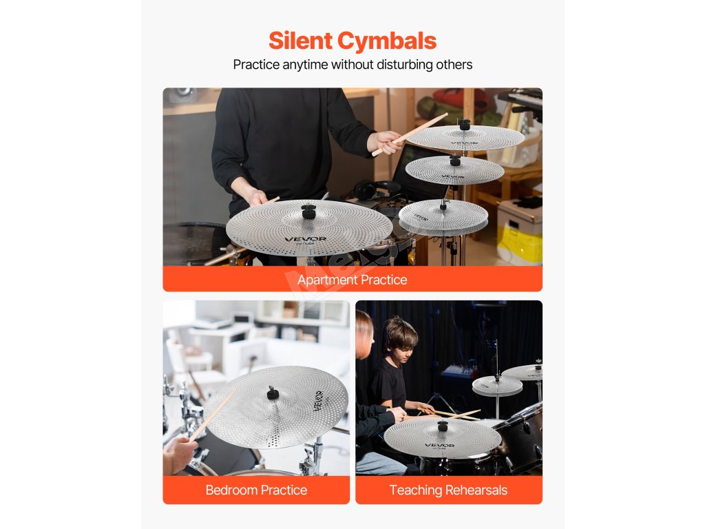 Či už cvičíte doma, v hudobnej škole alebo na pódiu, tieto činely na bicie poskytujú čisté, živé tóny a sú ideálne pre akýkoľvek hudobný štýl. Skvele sa hodia na akékoľvek prostredie alebo vystúpenie.