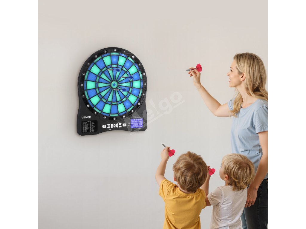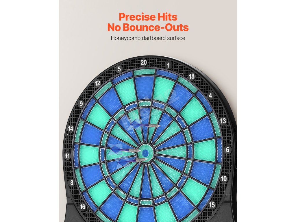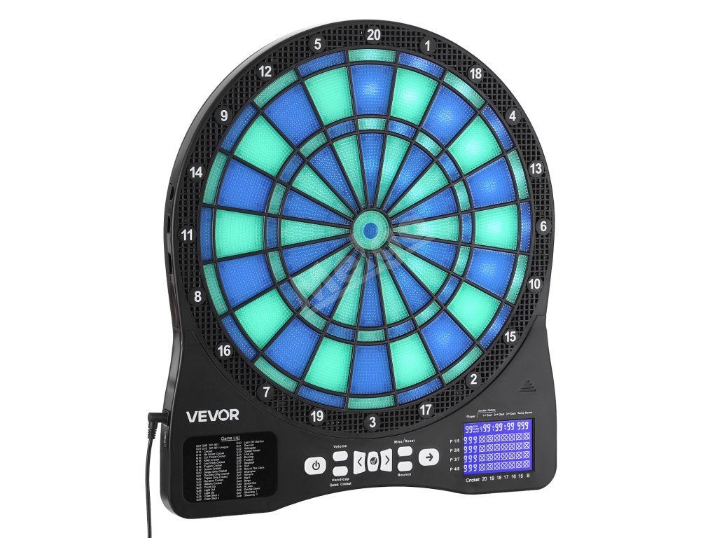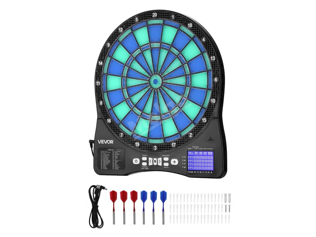 Tento elektronický šípkový terč obsahuje 48 herných režimov a viac ako 500 herných kombinácií, ktoré podporujú až 8 hráčov. S cieľovou plochou s podsvietením LED a obrazovkou LCD s bodovaním, ktorá zobrazuje skóre v reálnom čase a priebeh kola pre presné zásahy, je ideálna na rodinné stretnutia, zábavu v kancelárii alebo na dovolenkové večierky.