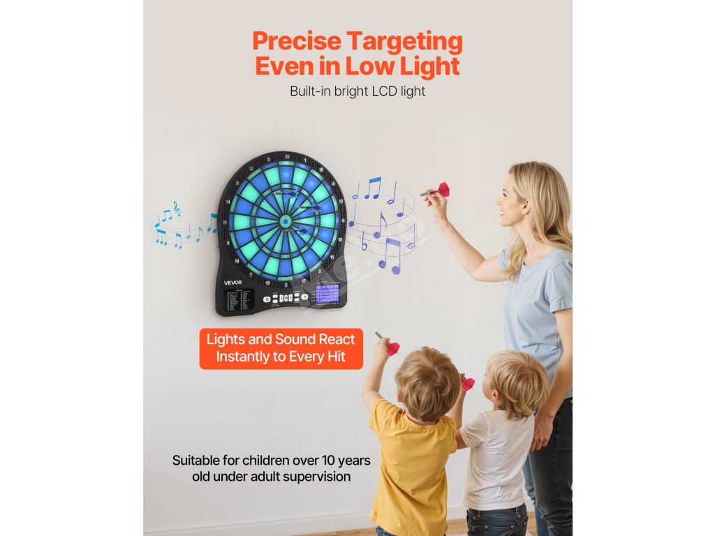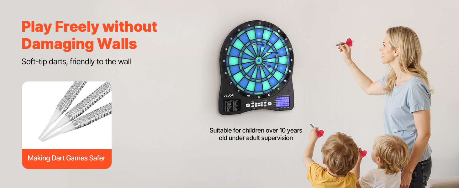 Elektronická hracia doska na šípky obsahuje mäkké hroty šípok, ktoré minimalizujú poškriabanie a nárazy, čím chránia vaše steny pred poškodením. Prináša zábavný a interaktívny herný zážitok doma, na večierkoch alebo v herniach.