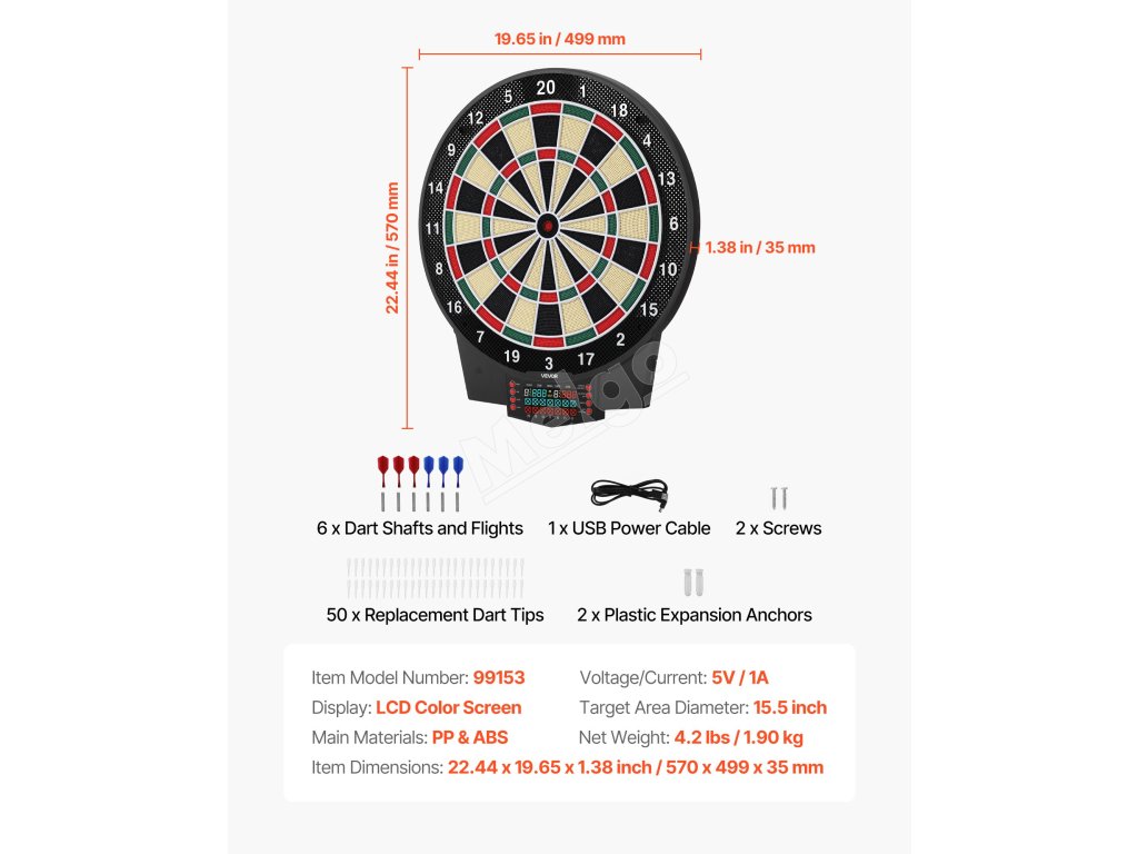 Elektronický terč na šípky 391mm, 43 hier 320+ variácií, 8 hráčov, lcd