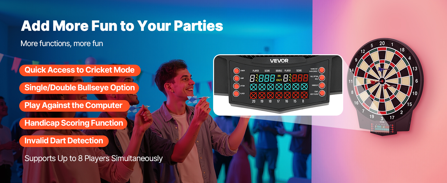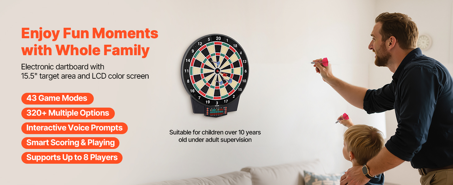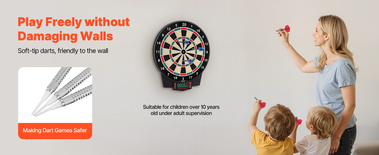 Elektronická šípková doska obsahuje mäkké hroty šípok, ktoré minimalizujú poškriabanie a nárazy, čím chránia vaše steny pred poškodením. Prináša zábavný a interaktívny herný zážitok doma, na večierkoch alebo v herniach.