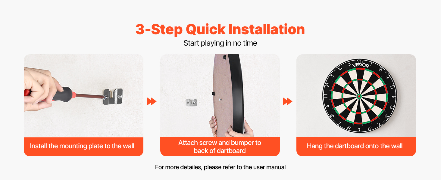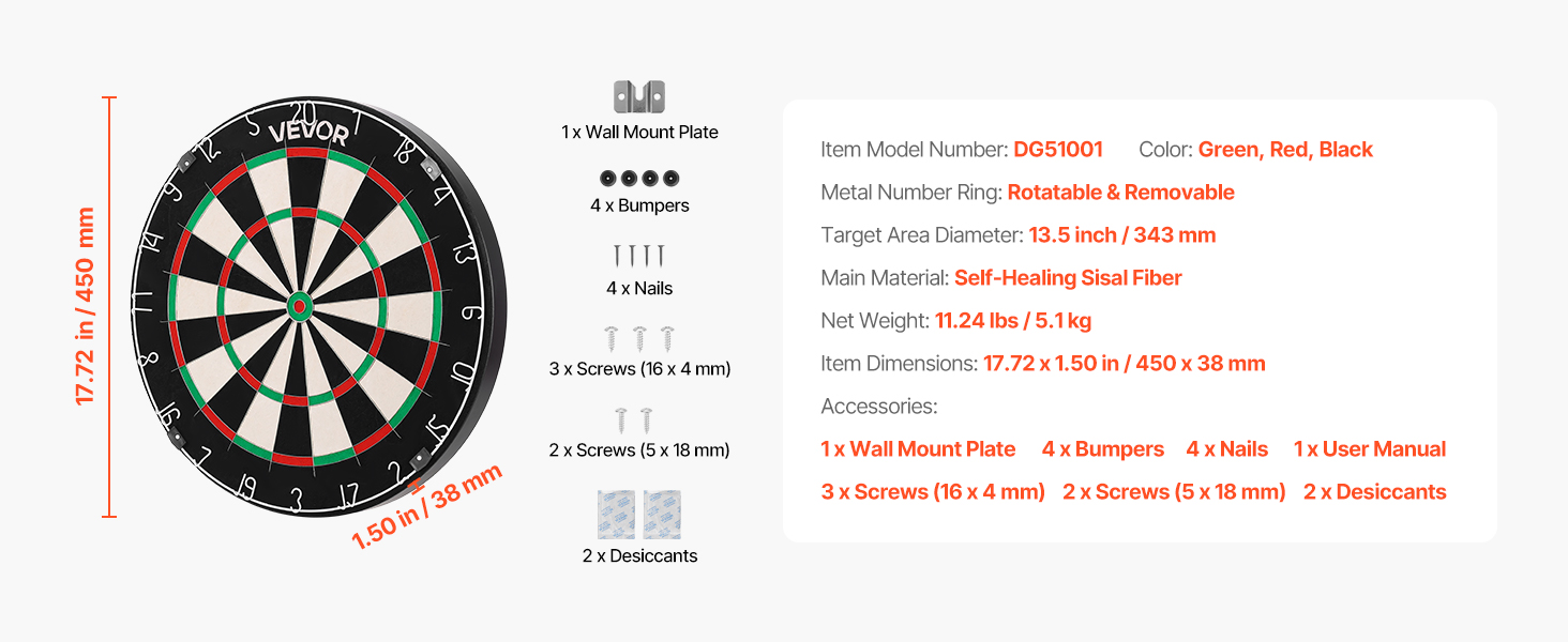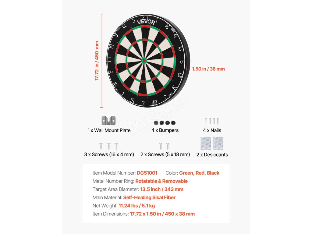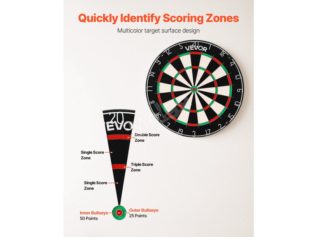 Tento šípkový terč s rozmermi 17,72 palca a 13,5-palcovou cieľovou plochou, ktorý spĺňa medzinárodné súťažné normy, vám umožní simulovať skutočné zápasy priamo doma, zdokonaliť si mušku a užiť si vzrušenie zo súťažnej hry.
