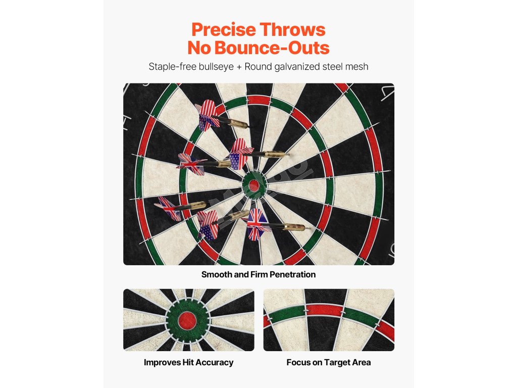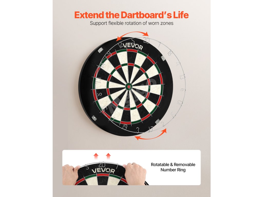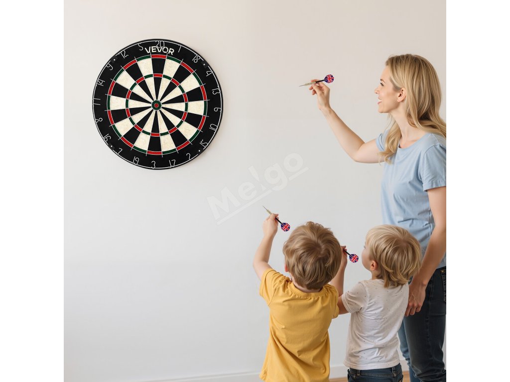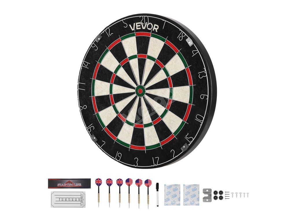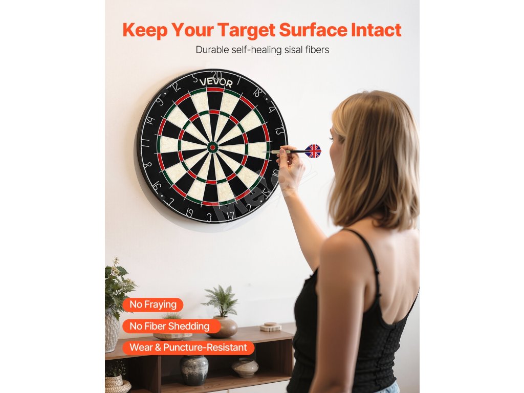 Terč na šípky VEVOR je vybavený prvotriednymi samoregeneračnými sisalovými vláknami, terčom bez sponiek a odnímateľným, otočným krúžkom s číslami. Dodáva sa so 6 šípkami s oceľovým hrotom a bodovacou súpravou. Zlepšuje presnosť zásahov, znižuje počet odrazov a prináša strhujúcu zábavu pre rodinu a priateľov.
