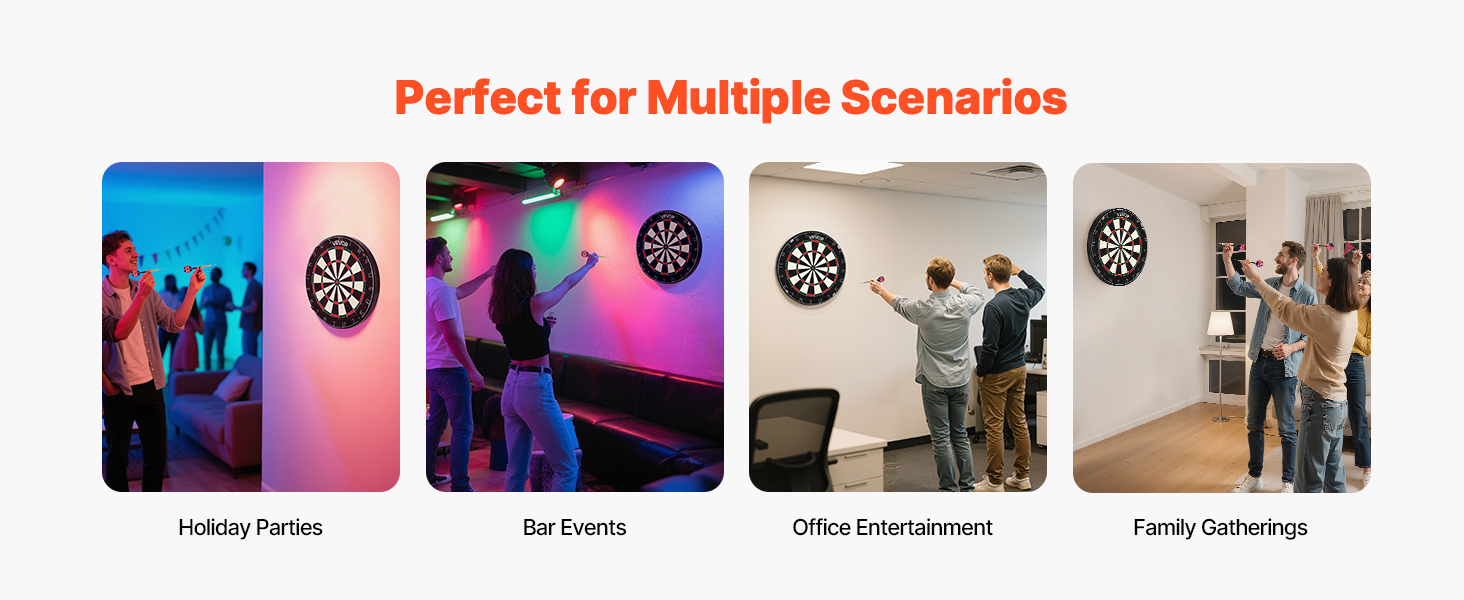 Či už ide o rodinnú oslavu, prázdninový večierok, klubovňu alebo barovú aktivitu, tento sisalový terč na šípky sa bez problémov hodí na každú príležitosť. Kombinuje interaktívnu zábavu so súťažnou hrou a je dokonalým nástrojom na spoločenské stretnutia a relaxáciu.