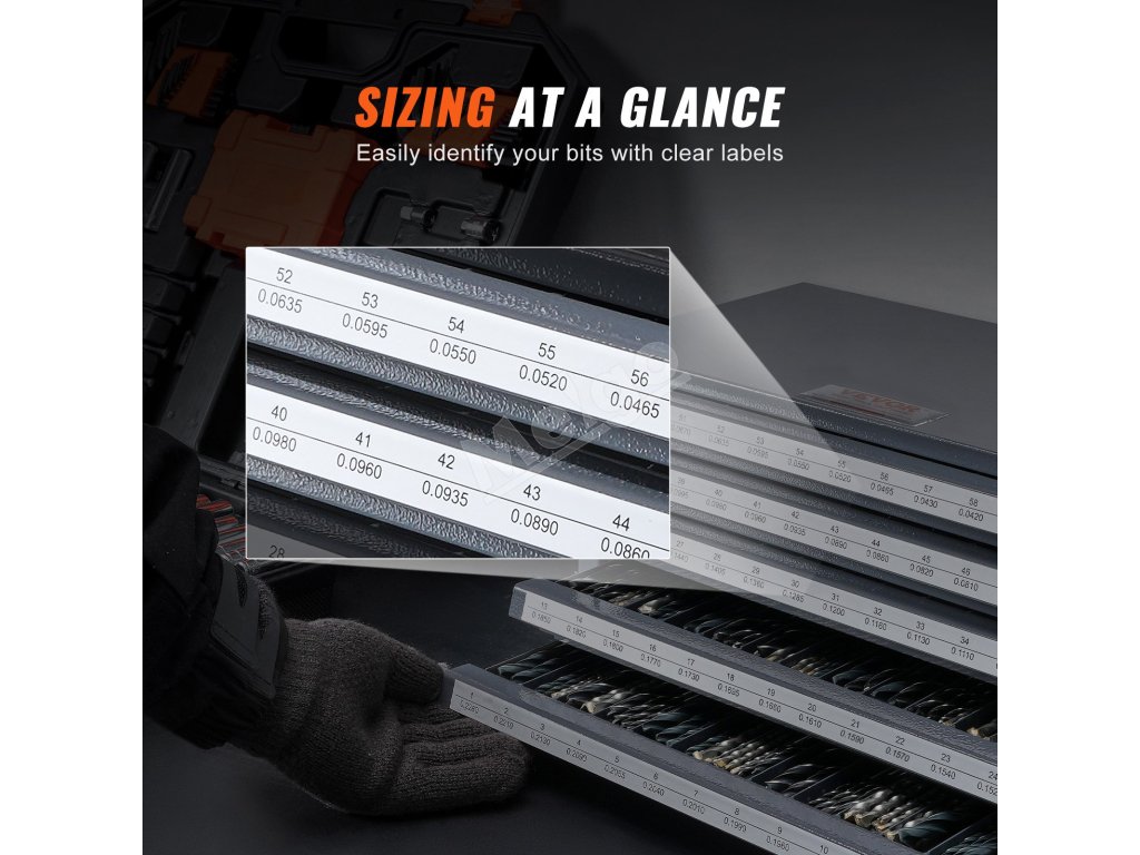 Vďaka prehľadným štítkom s veľkosťou môžete rýchlo vybrať a použiť správny vrták pre danú úlohu, čím sa zvýši efektivita vašej práce. Udržiavanie poriadku v skrinke na náradie alebo v úložnej skrinke zaručuje čistejší a profesionálnejší pracovný priestor.
