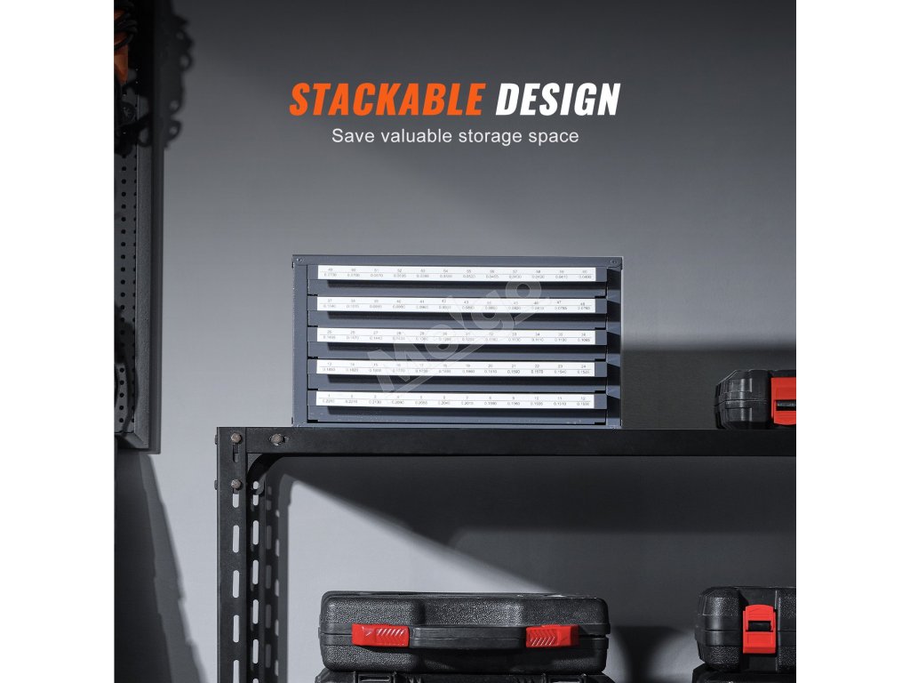 Môžete používať viacero skriniek na organizovanie vrtákov vedľa seba alebo ich ukladať na seba, čím nielen ušetríte miesto, ale zároveň sa váš pracovný priestor stane organizovanejším a prehľadnejším. Je univerzálna a prispôsobiteľná rôznym scenárom a priestorom.