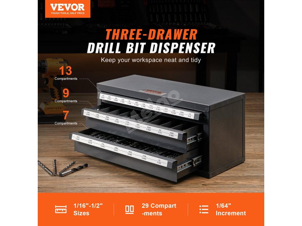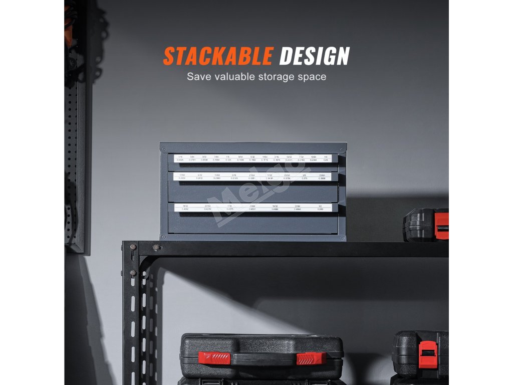 Skrinka na vrtáky 3 zásuvky 1.59–12.7 mm oceľ stohovateľná s popiskami