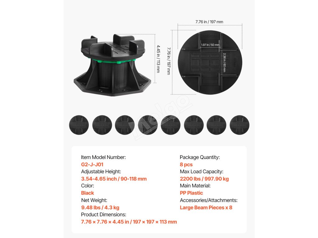 Podperné bloky terasy 8 pcs, 2200 lbs / 997.90 kg, 90–118 mm