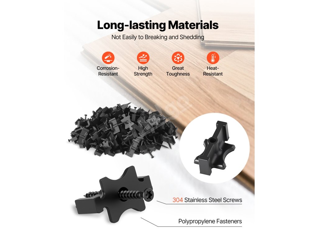 Obsahuje podrobné pokyny na rýchle a jednoduché nastavenie - dokonca aj začiatočníci môžu tieto upevňovacie prvky ľahko nainštalovať, čím udržia palubové dosky pevne na mieste a zabránia ich pohybu alebo deformácii.