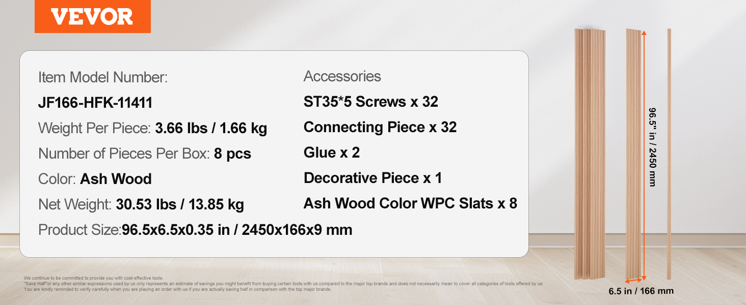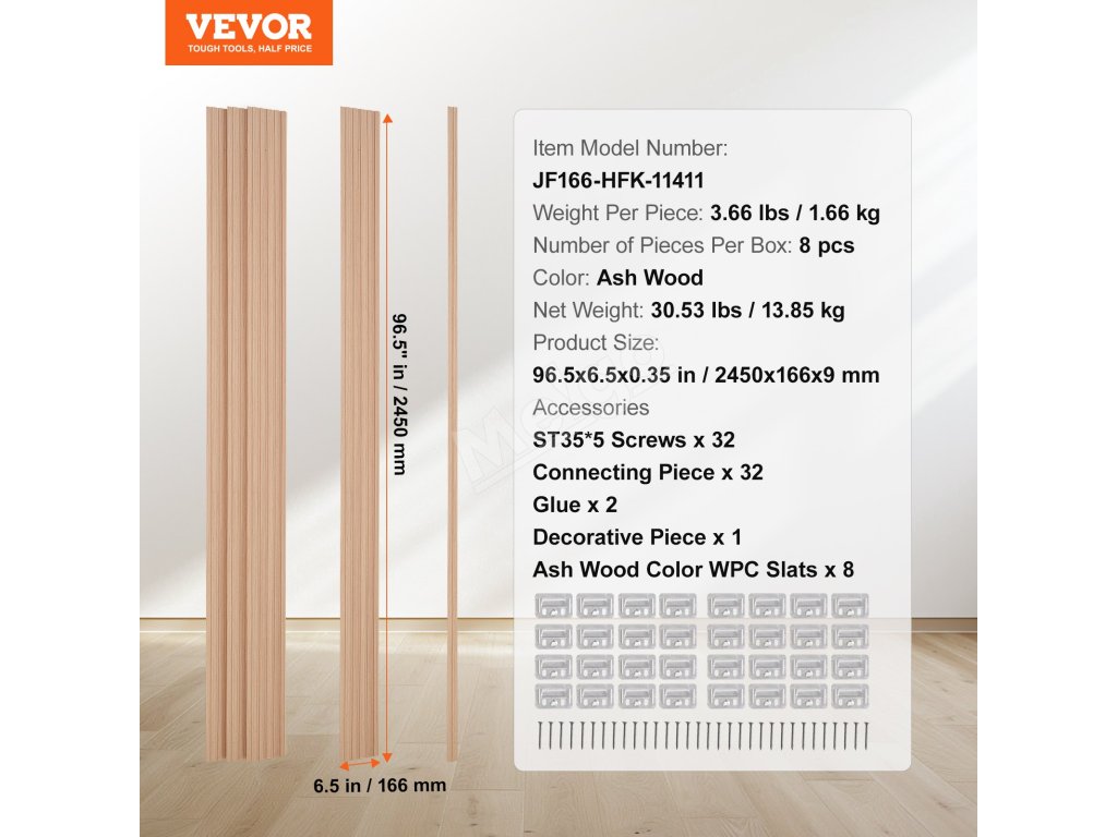 Akustické lamelové panely na stenu 8 ks 96×6" wpc jasan vzhľad