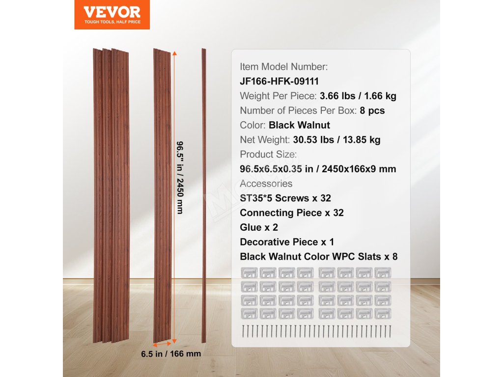 Akustické wpc lamely na stenový obklad 8 ks 96×6 inch čierny orech