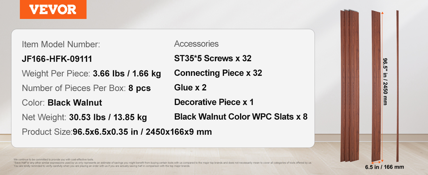 | Veľkosť výrobku | 96.5x6,5x0,35 in / 2450x166x9 mm |