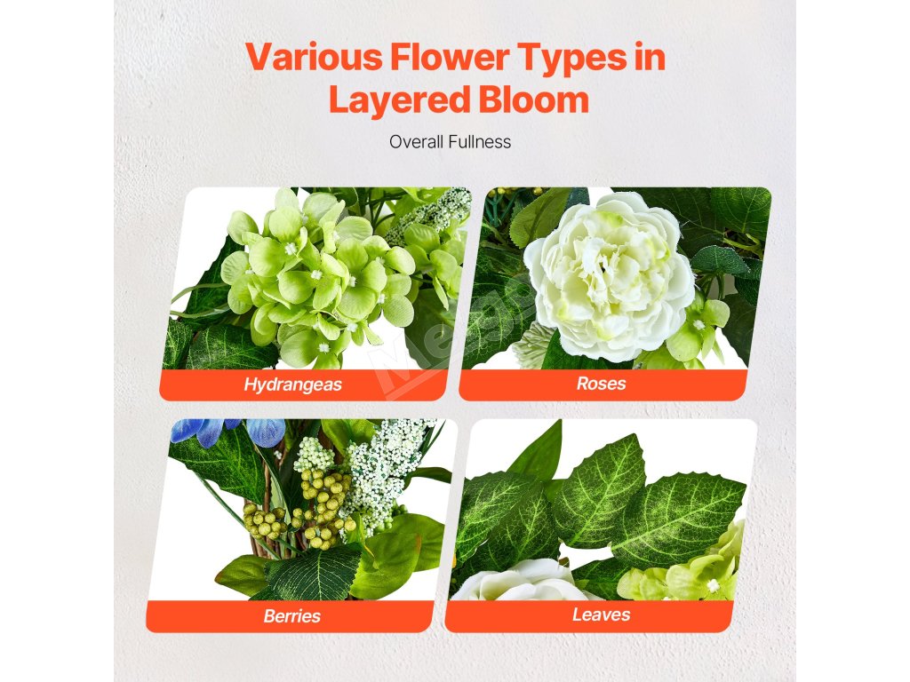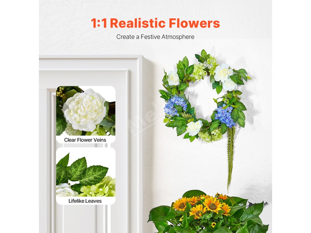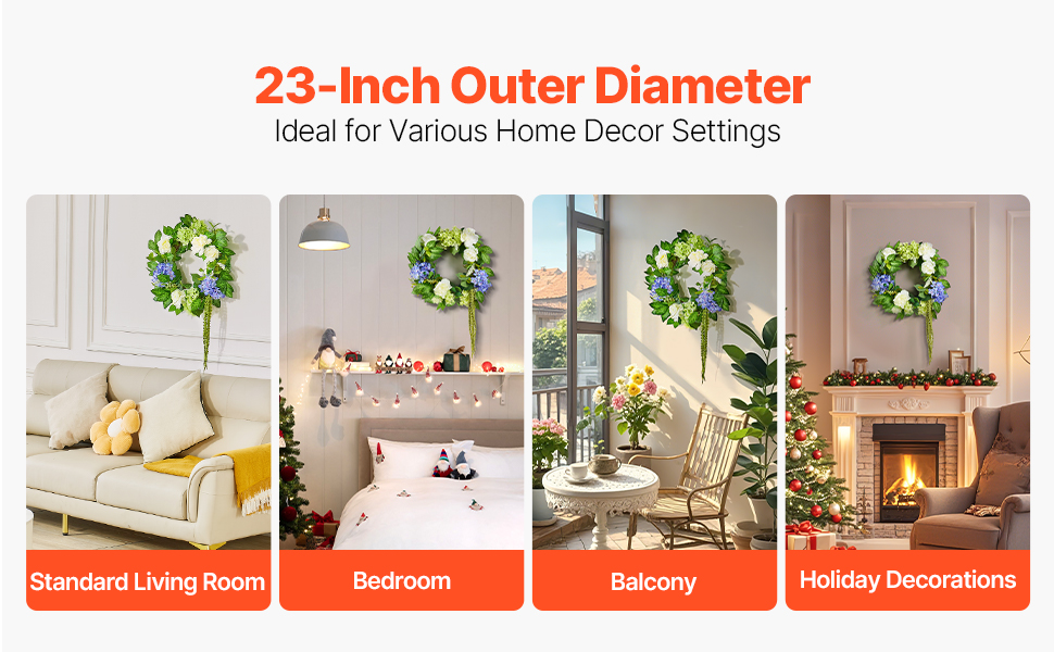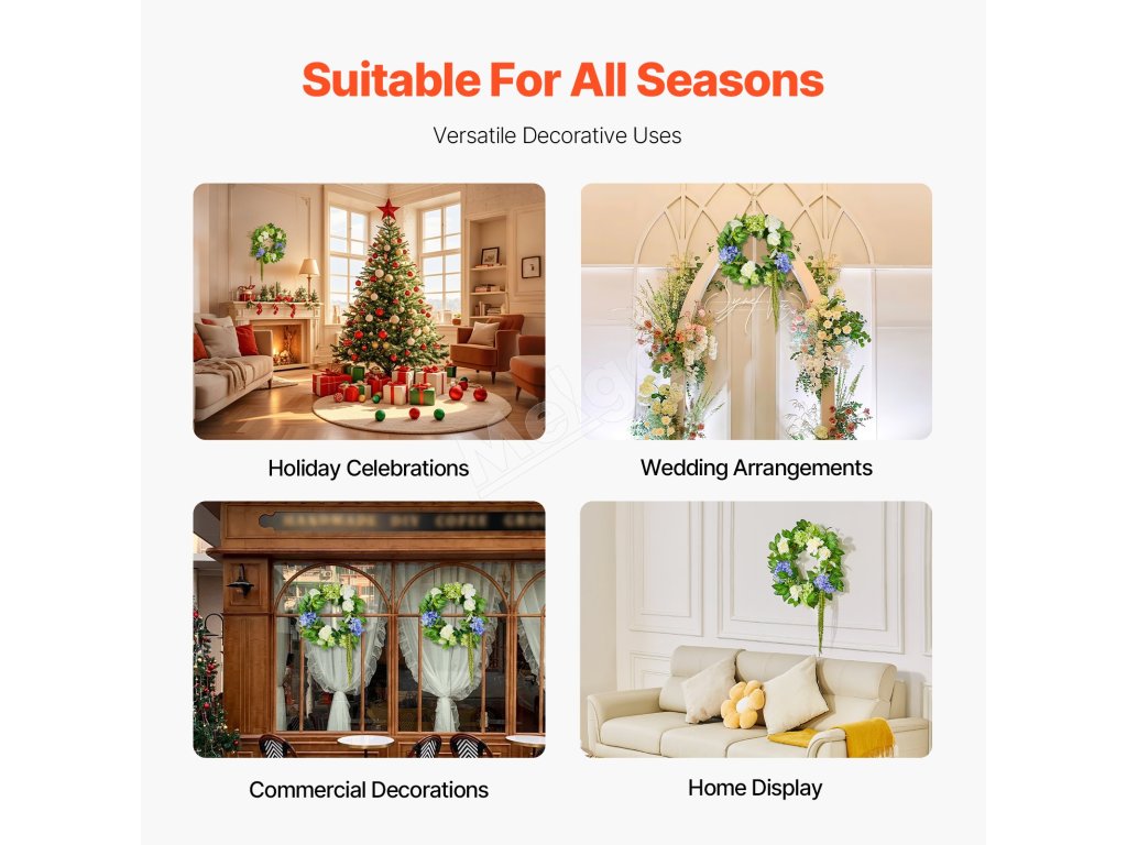 Tento umelý veniec s vonkajším priemerom približne 23 palcov je ideálny na zdobenie štandardných obývacích izieb, spální, balkónov, sviatočných dekorácií a iných domácich priestorov, ktorým dodá nádych prirodzenej elegancie.