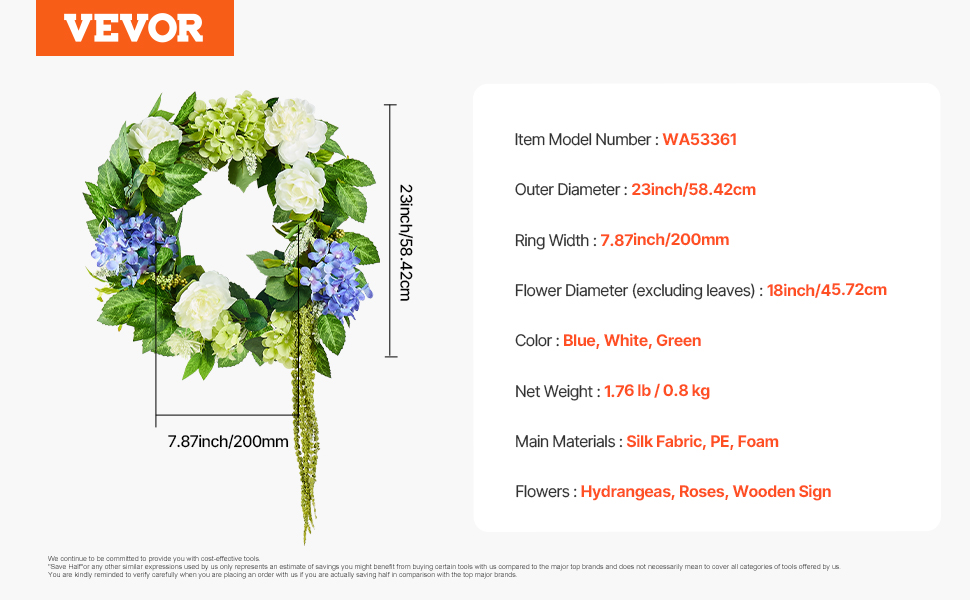 Tento realistický dekoratívny veniec v pomere 1:1 je vyrobený z vysokokvalitnej hodvábnej tkaniny, vyznačuje sa dlhotrvajúcimi farbami a zložitými detailmi. Vďaka vhodnej veľkosti, jednoduchému umiestneniu a nenáročnej údržbe je ideálny na rôzne dekoratívne úpravy domácností alebo osláv.