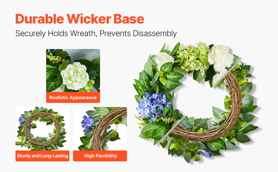 Základňa tohto celoročného venca vyrobená z vysokokvalitného prútia má realistický vzhľad a pevnú štruktúru. Poskytuje pevný základ pre vaše kreatívne dekorácie, pričom si zachováva krásu a stabilitu na dlhodobé používanie, či už na výzdobu domácnosti alebo na špeciálne príležitosti.