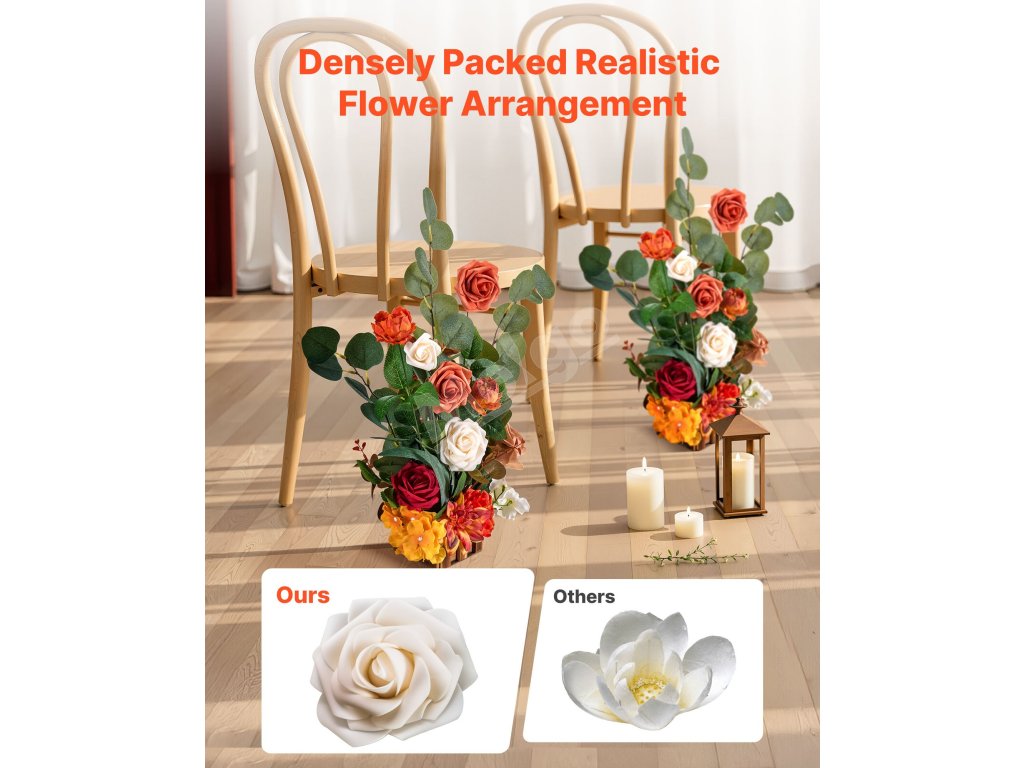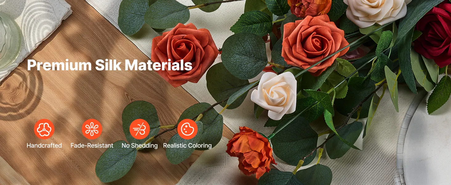 O 3: Každá kytica je ručne vyrobená z vysokokvalitných hodvábnych látok, ktoré sú pevne zaistené, aby sa zabránilo odlupovaniu. Môžu sa používať v interiéri aj exteriéri.