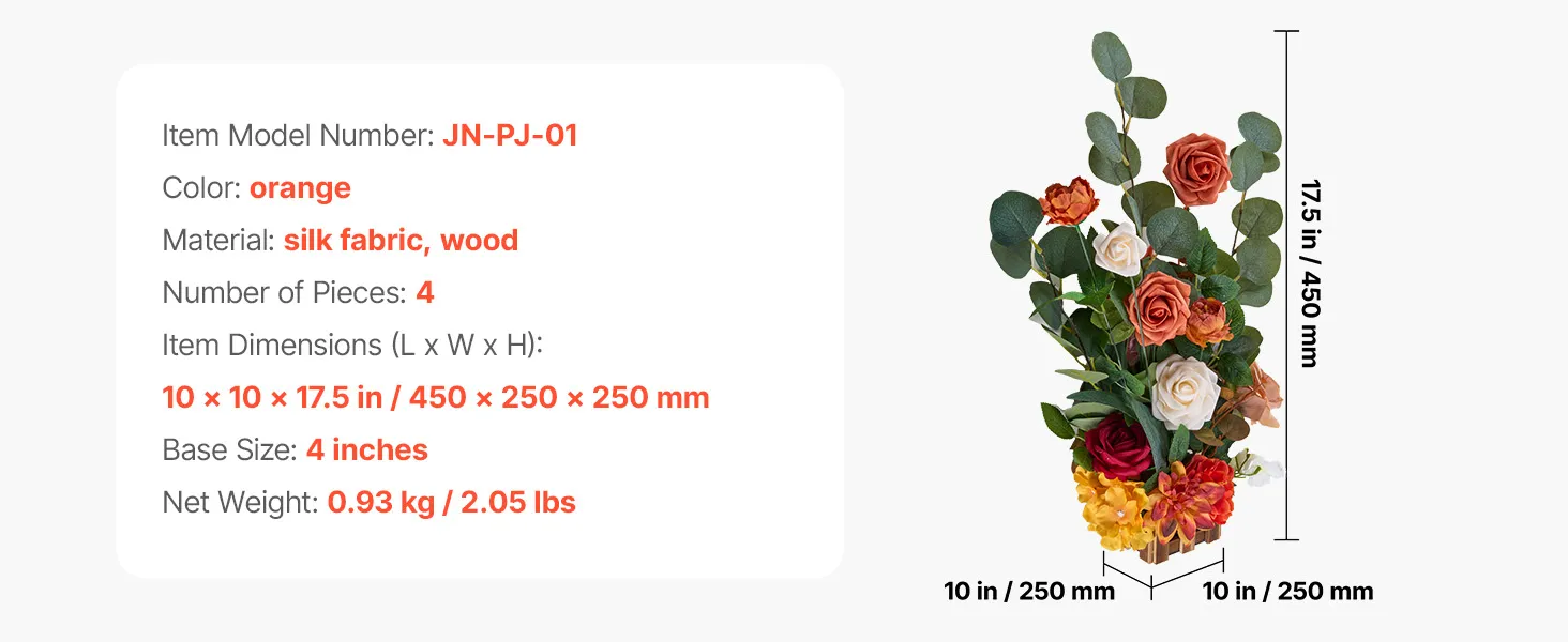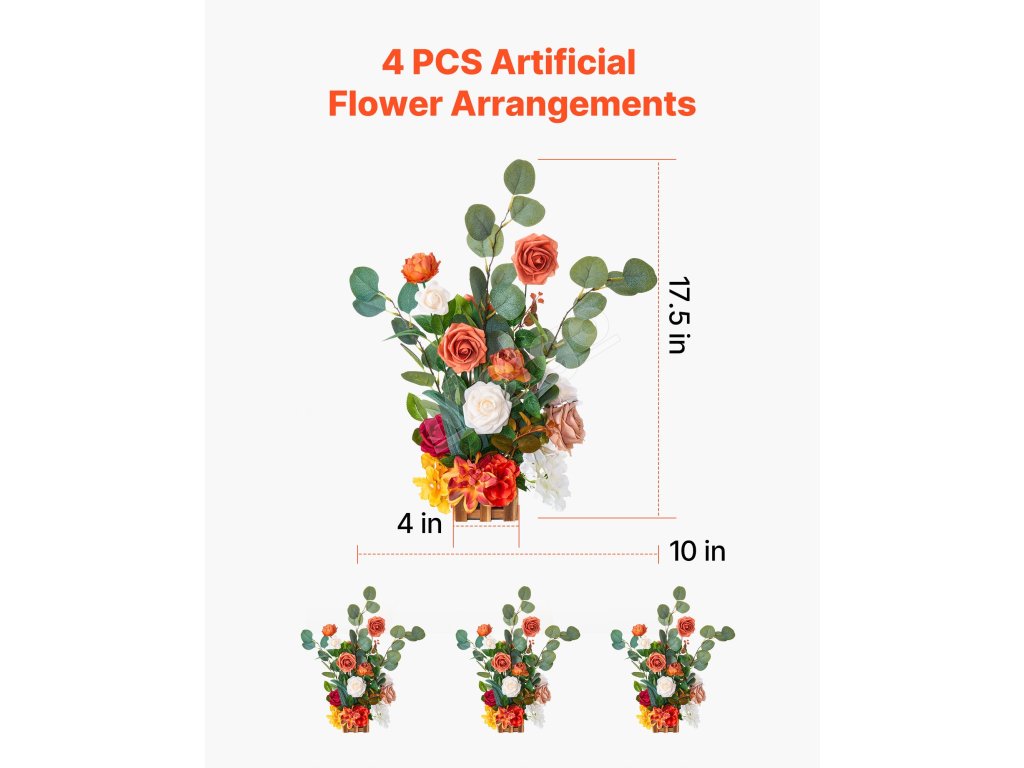 Stojace umelé kvetinové aranžmány 4 ks, výška 450 mm, oranžové