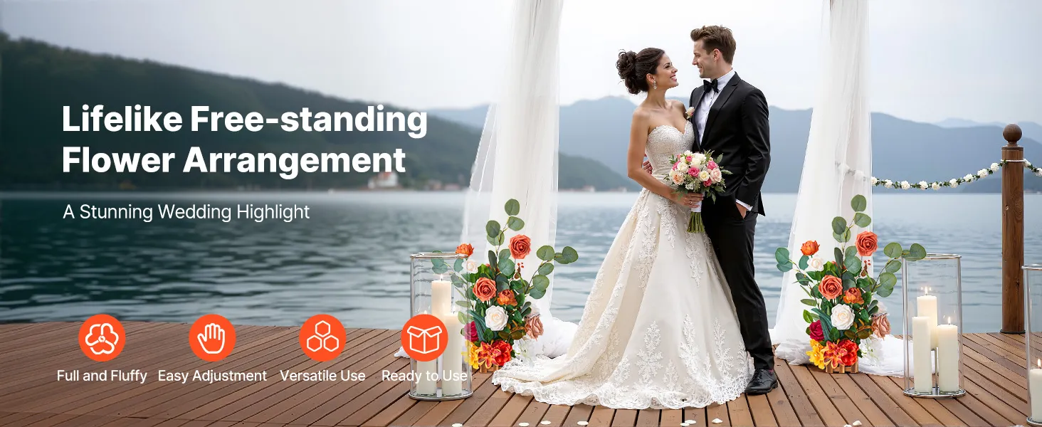 Odpoveď 1: Naše kytice sa hodia na väčšinu svadobných stojanov, oblúkov a centrálnych dekorácií. Pred nákupom si pozrite tabuľku veľkostí. Ak používate vlastný rám, uistite sa, že veľkosť základne zodpovedá otvoru v spodnej časti kytice.