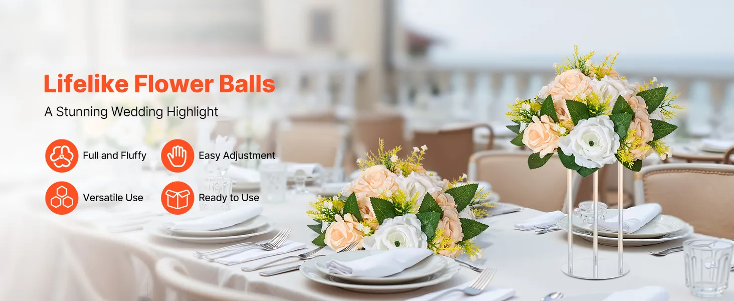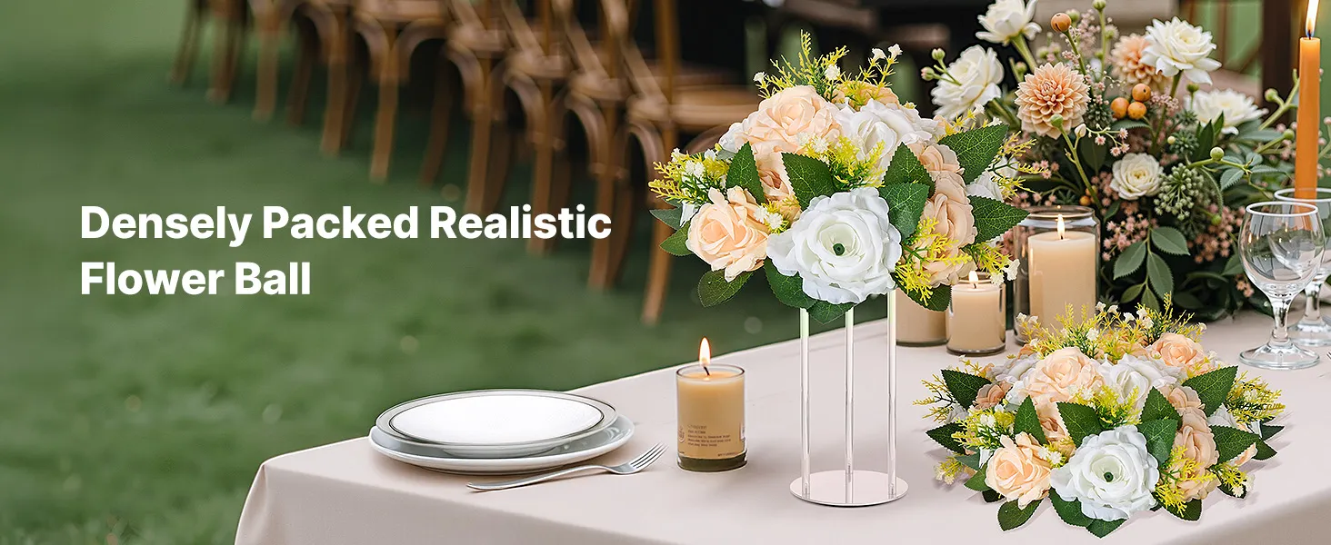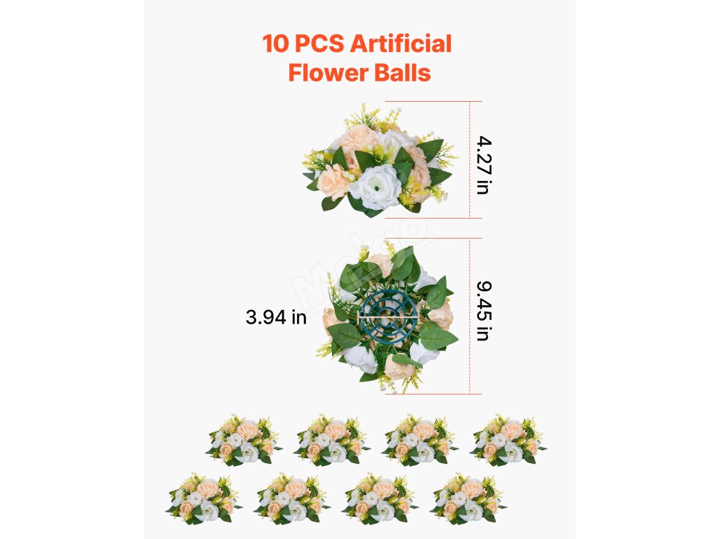 Umelé kvetinové gule, 10 ks, priemer 240 mm, šampanské a biele