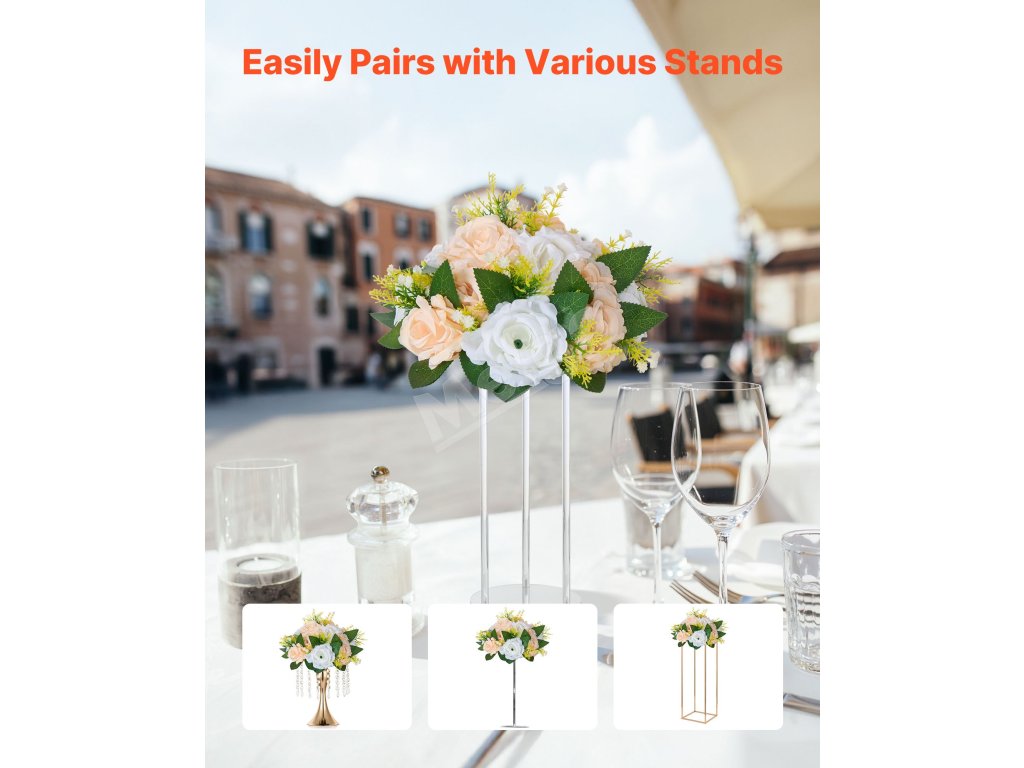 Odpoveď 1: Naše kytice sa hodia na väčšinu svadobných stojanov, oblúkov a centrálnych dekorácií. Pred nákupom si pozrite tabuľku veľkostí. Ak používate vlastný rám, uistite sa, že veľkosť základne zodpovedá otvoru v spodnej časti kytice.