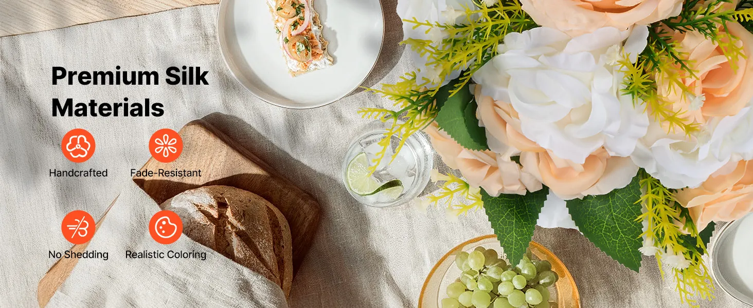 O 3: Každá kytica je ručne vyrobená z vysokokvalitných hodvábnych látok, ktoré sú pevne zaistené, aby sa zabránilo odlupovaniu. Môžu sa používať v interiéri aj exteriéri.