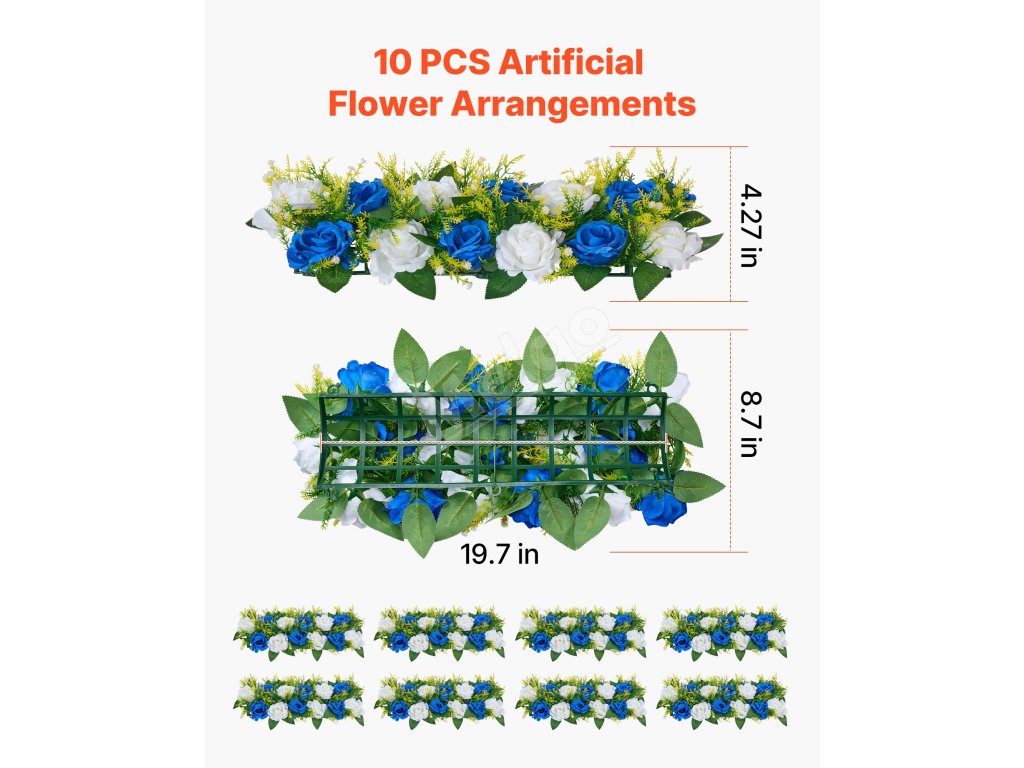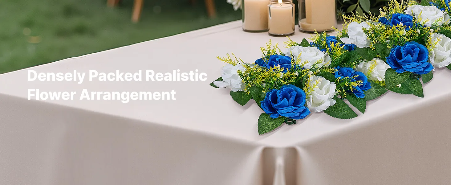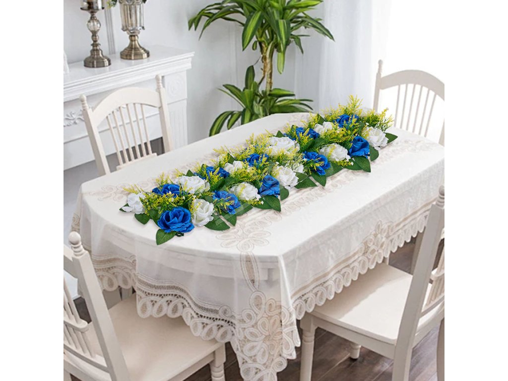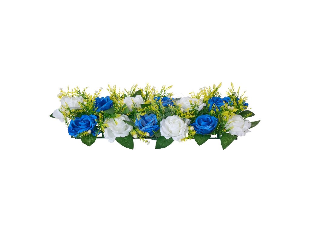 Umelé kvetinové guľky 10 ks 500×220 mm modro-biele ruže na stôl