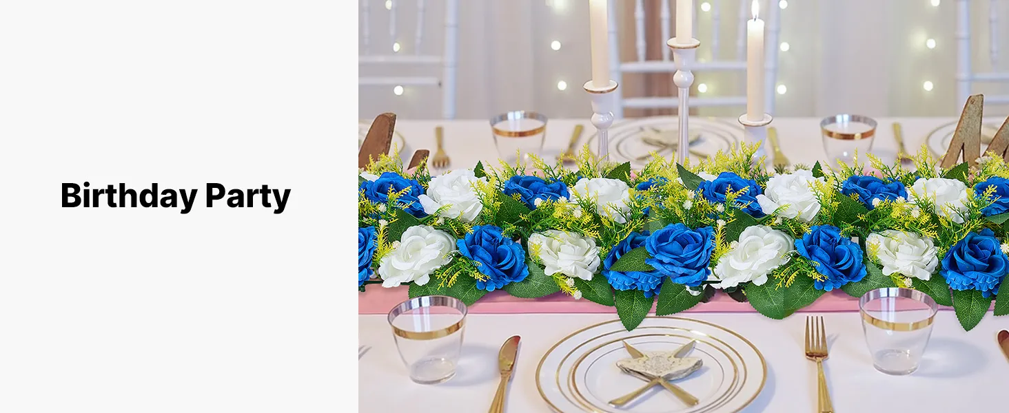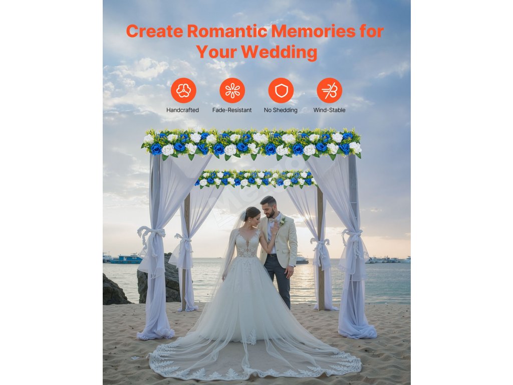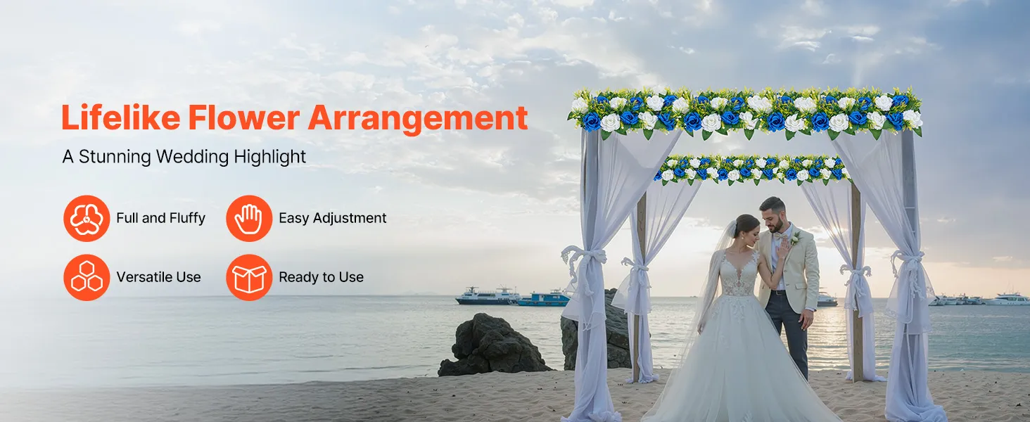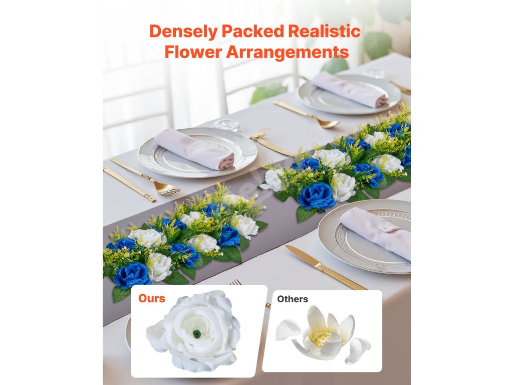 Umelé kvetinové guľky 10 ks 500×220 mm modro-biele ruže na stôl