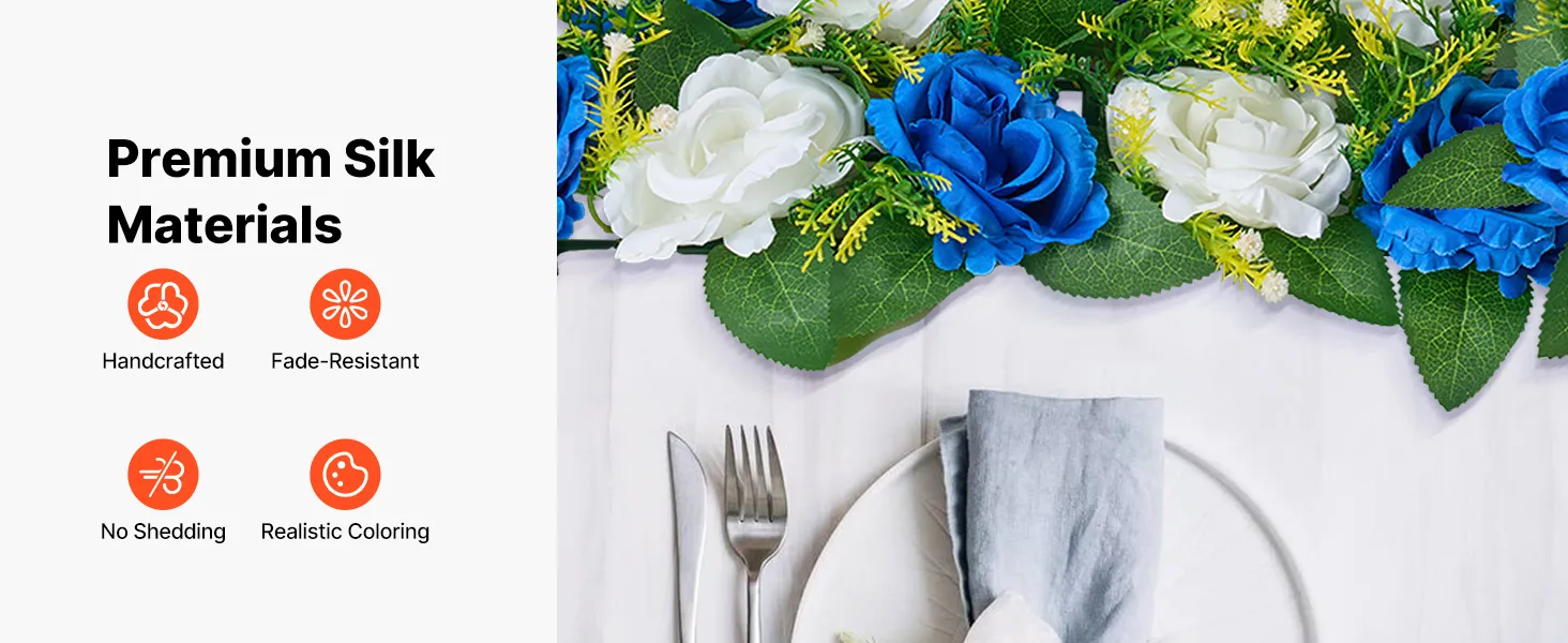 O 3: Každá kytica je ručne vyrobená z vysokokvalitných hodvábnych látok, ktoré sú pevne zaistené, aby sa zabránilo odlupovaniu. Môžu sa používať v interiéri aj exteriéri.