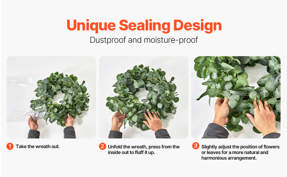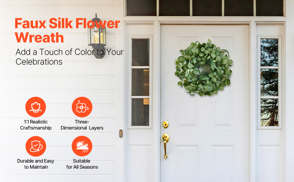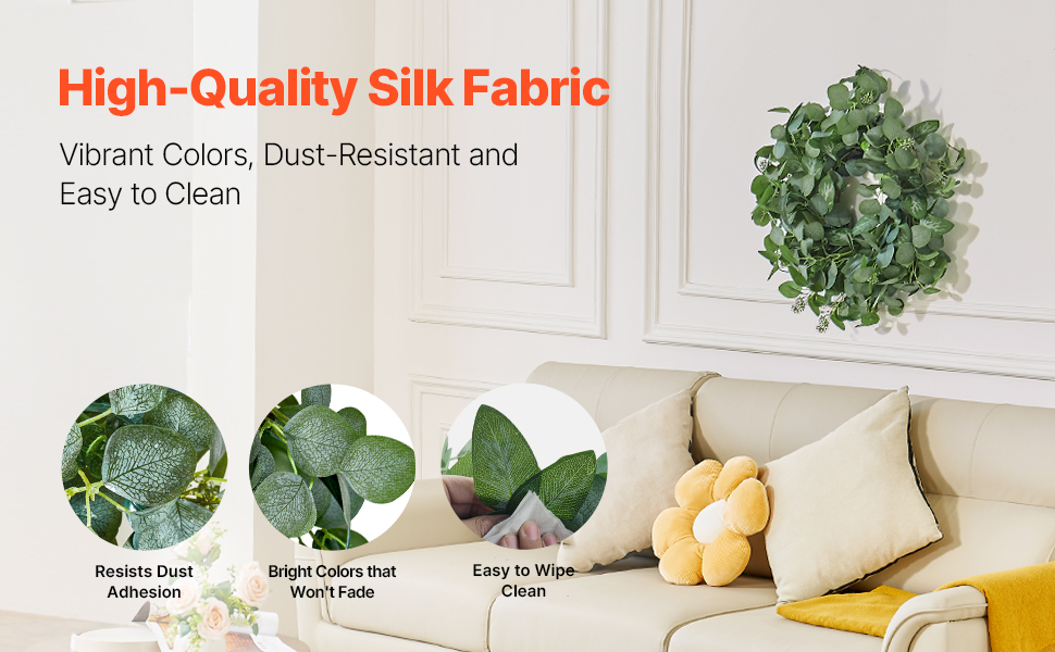 Povrch tohto venca na vchodové dvere, ktorý je vyrobený z vysokokvalitnej hodvábnej tkaniny, je hladký a odolný voči prachu, čím si zachováva žiarivé farby bez toho, aby časom vybledli. Možno ho jemne utrieť vlhkou handričkou alebo vyprať, takže je vhodný na dlhodobú dekoráciu v rôznych prostrediach.