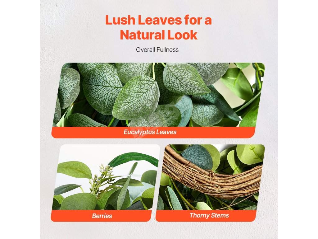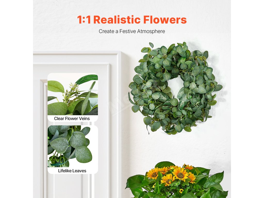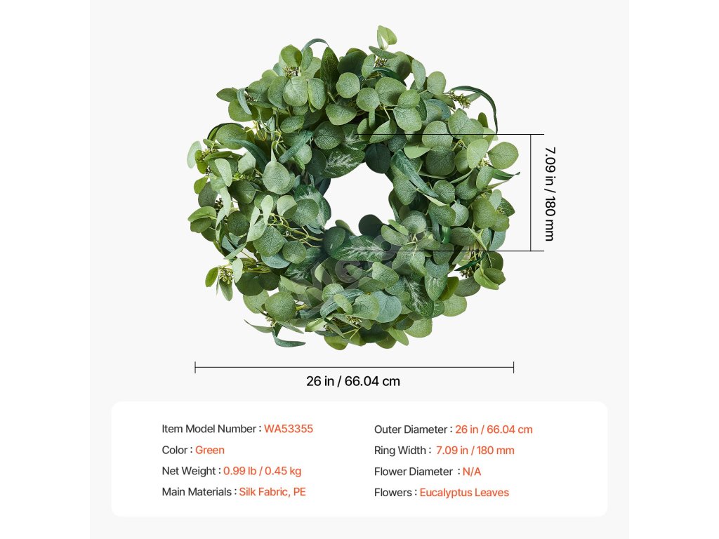 Tento umelý veniec s vonkajším priemerom približne 26 palcov je ideálny na zdobenie vstupných hál, veľkých obývacích izieb, banketových sál a vonkajších záhrad a iných domácich priestorov, ktorým dodá nádych prirodzenej elegancie.