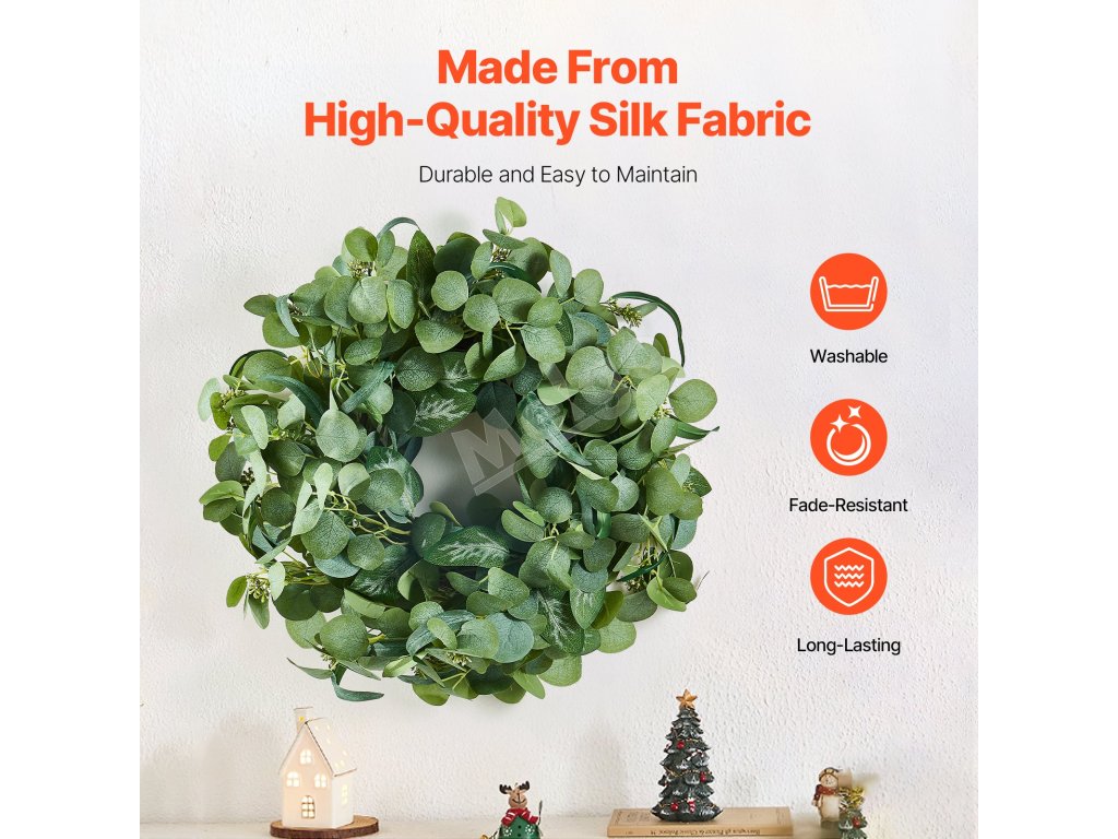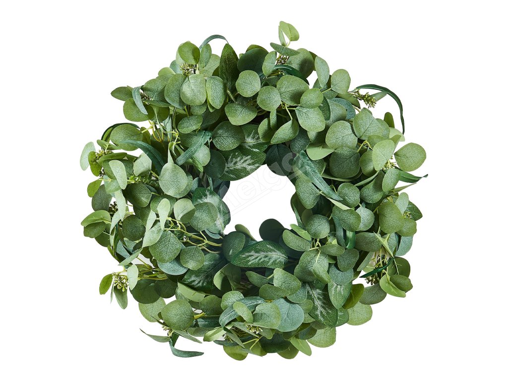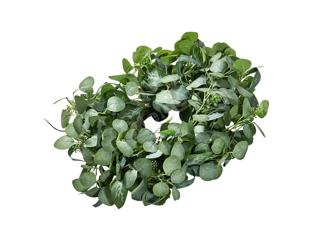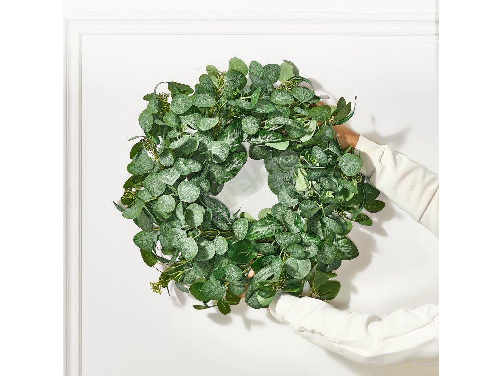 Umelý dekoratívny veniec 26 in zelený s eukalyptom a bobuľami