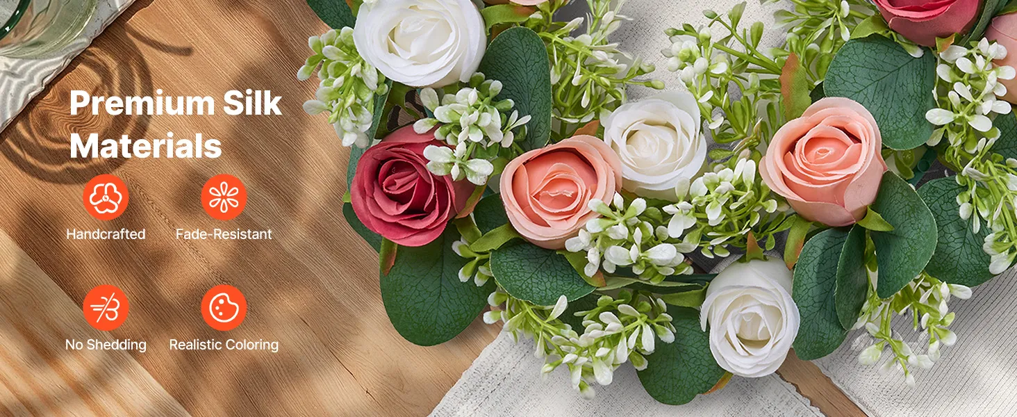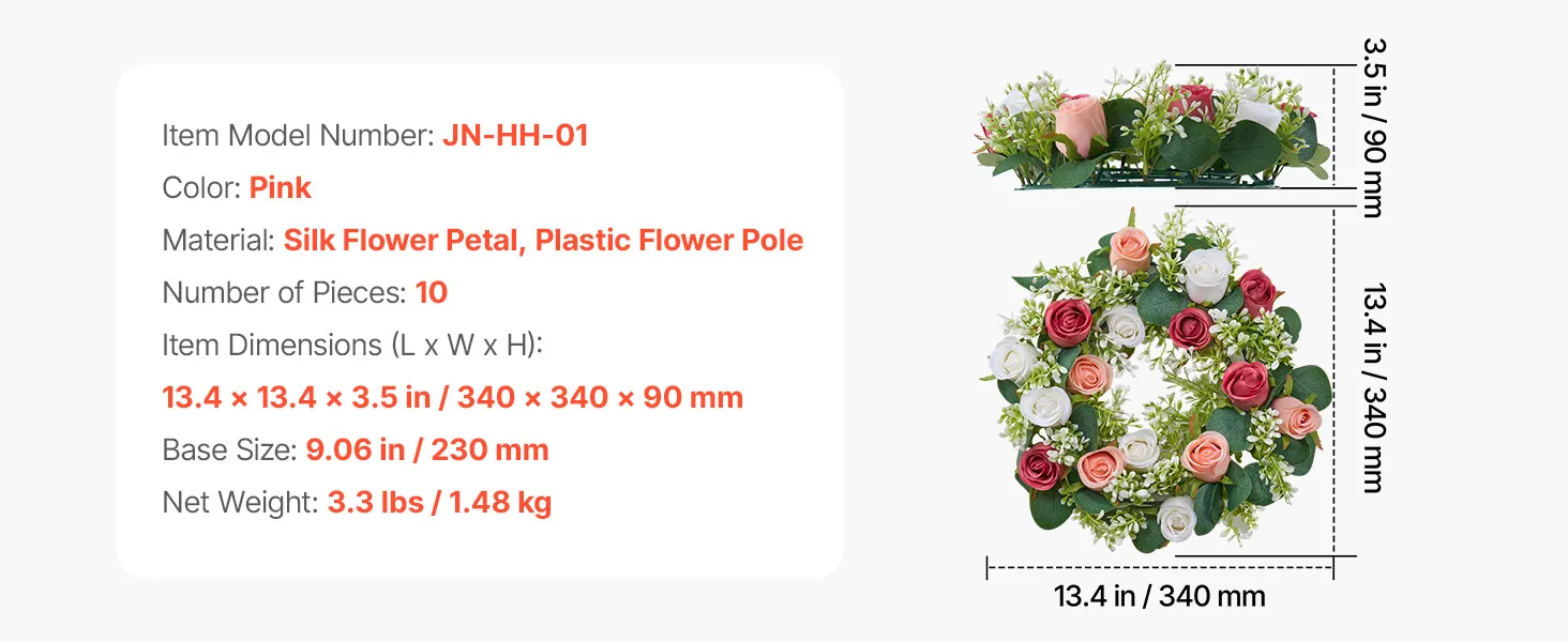 Veniec z umelých ruží, priemer 340 mm, ružovo-biely, 10 ks na stôl