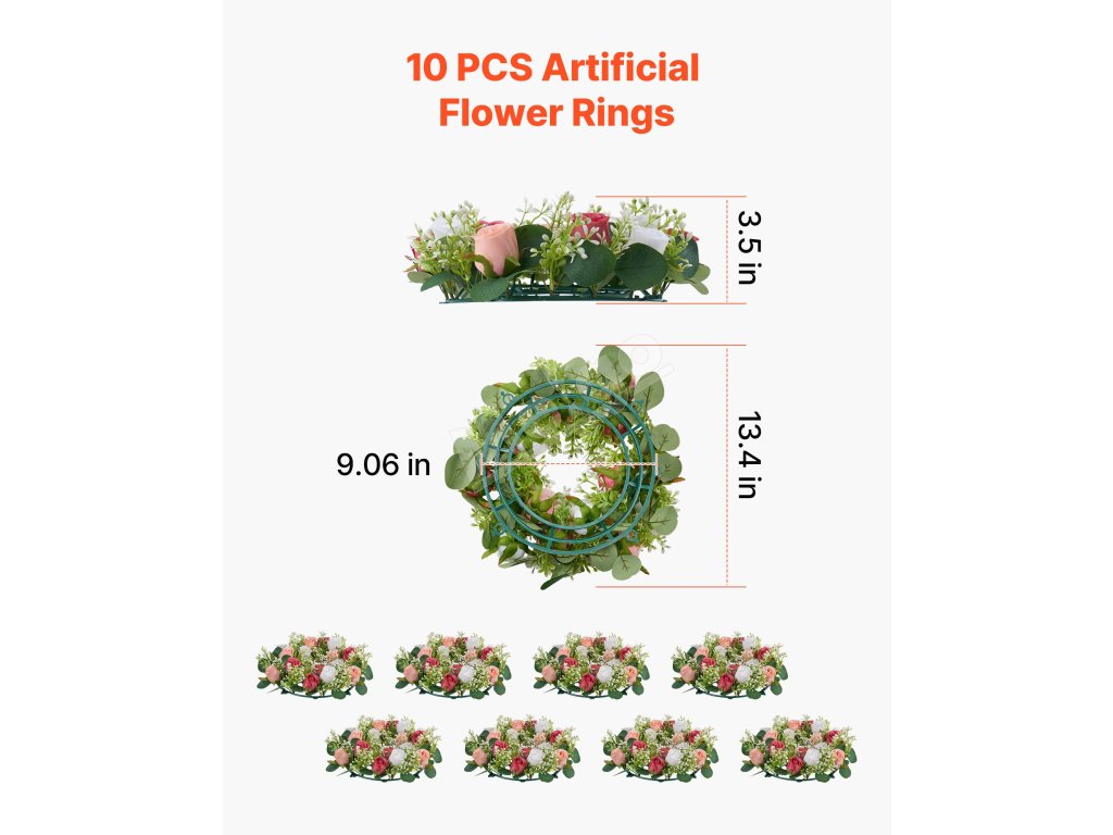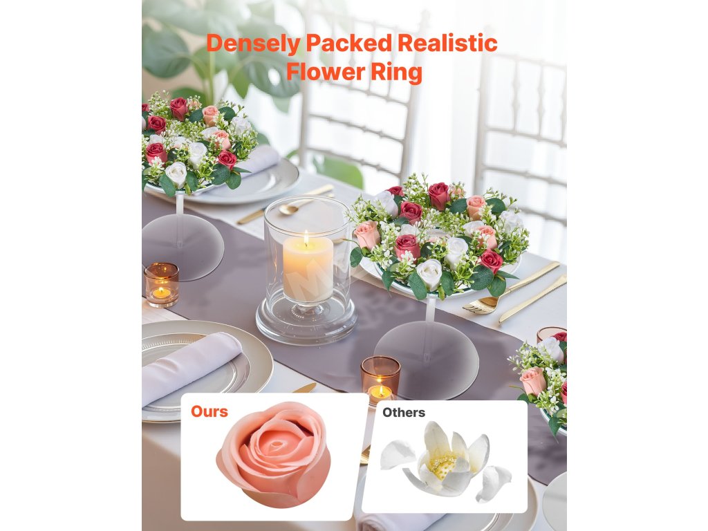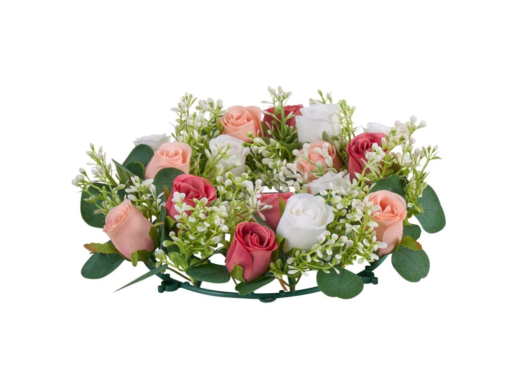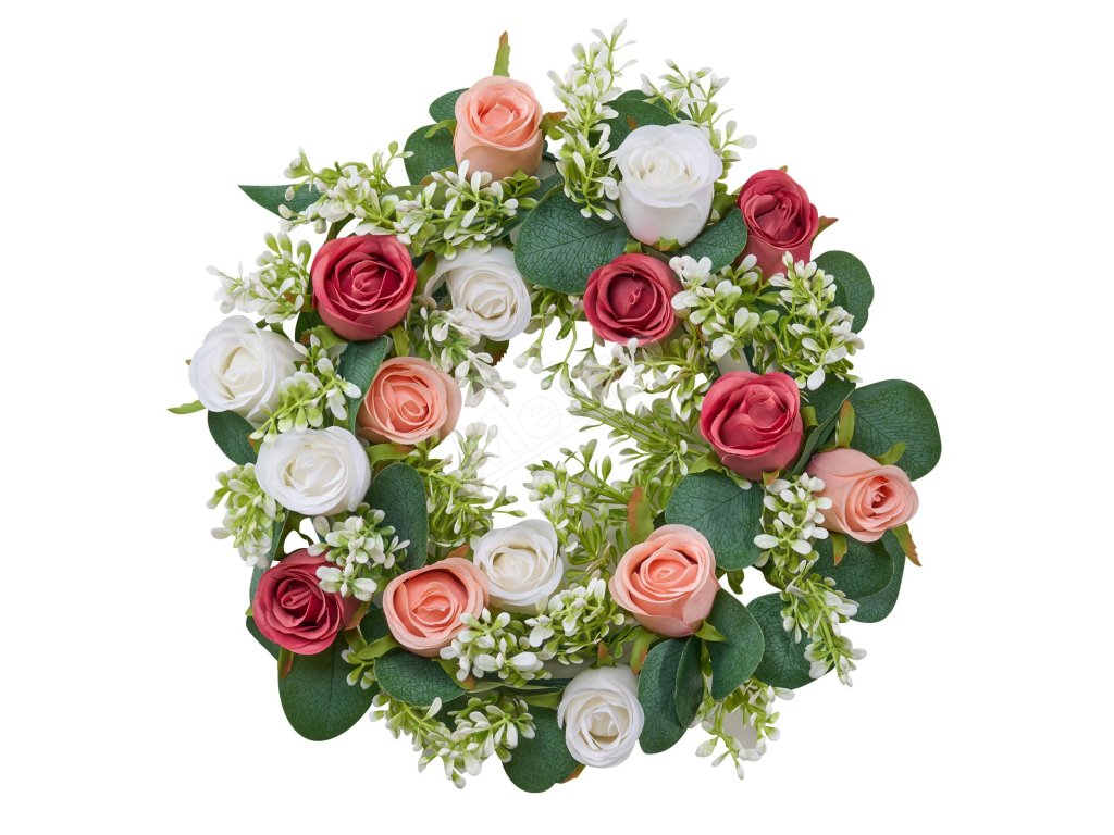 Veniec z umelých ruží, priemer 340 mm, ružovo-biely, 10 ks na stôl