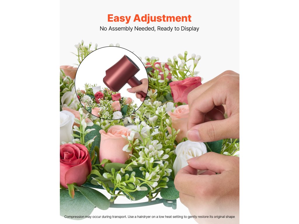 A2: Áno, každá kvetinová guľa je pre vaše pohodlie úplne zmontovaná. Vzhľadom na balenie môže dôjsť k miernemu stlačeniu. Jednoducho použite fén na niekoľko sekúnd na nízku teplotu a jemne rozložte okvetné lístky rukou, aby ste obnovili ich tvar.