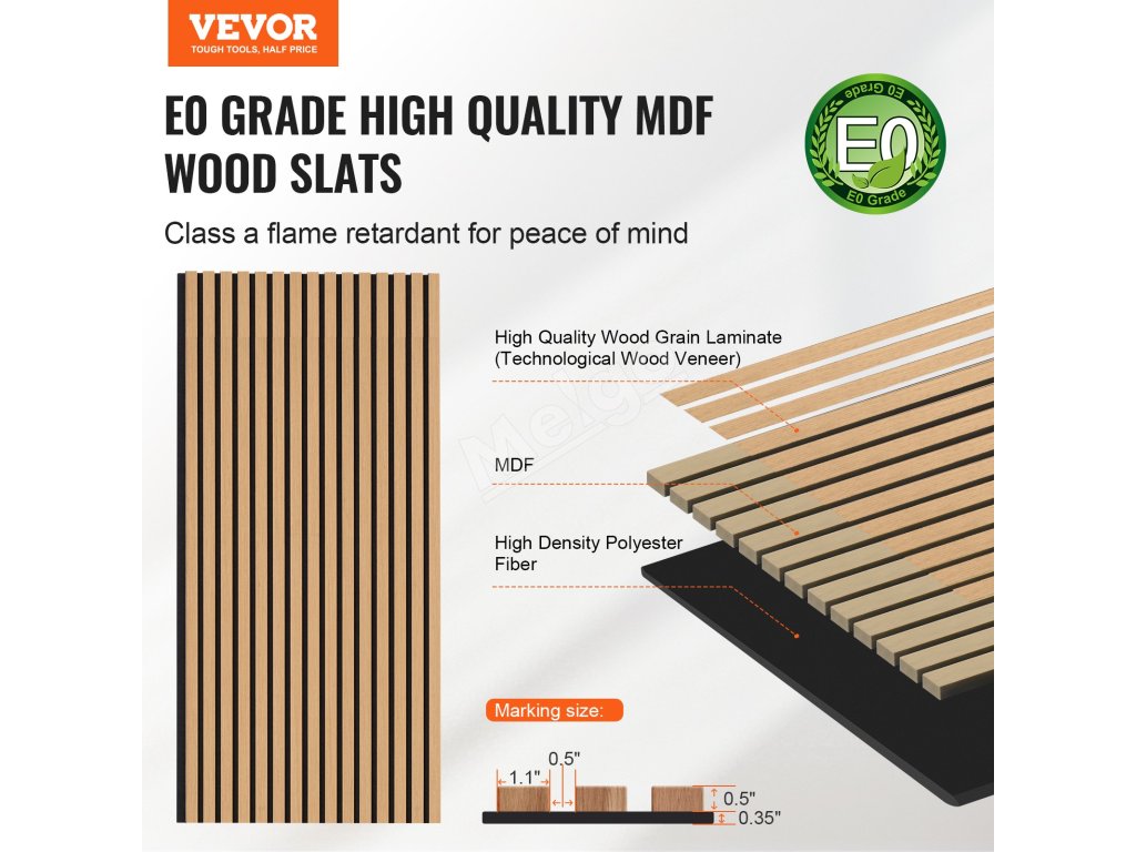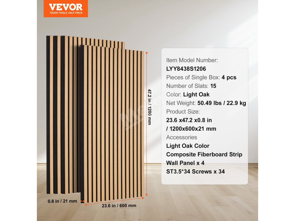 Drevené lamelové akustické panely 23.6×47.2 inch, mdf, svetlý dub