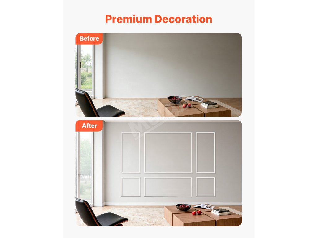 Táto sada lišt na steny obsahuje vopred narezané diely lišt pre hladkú a jednoduchú montáž. Nech už cez víkend renovujete prenajatý byt alebo modernizujete svoj dom, každý detail je navrhnutý tak, aby vám pomohol dosiahnuť výsledky hodné časopisu už na prvý pokus.