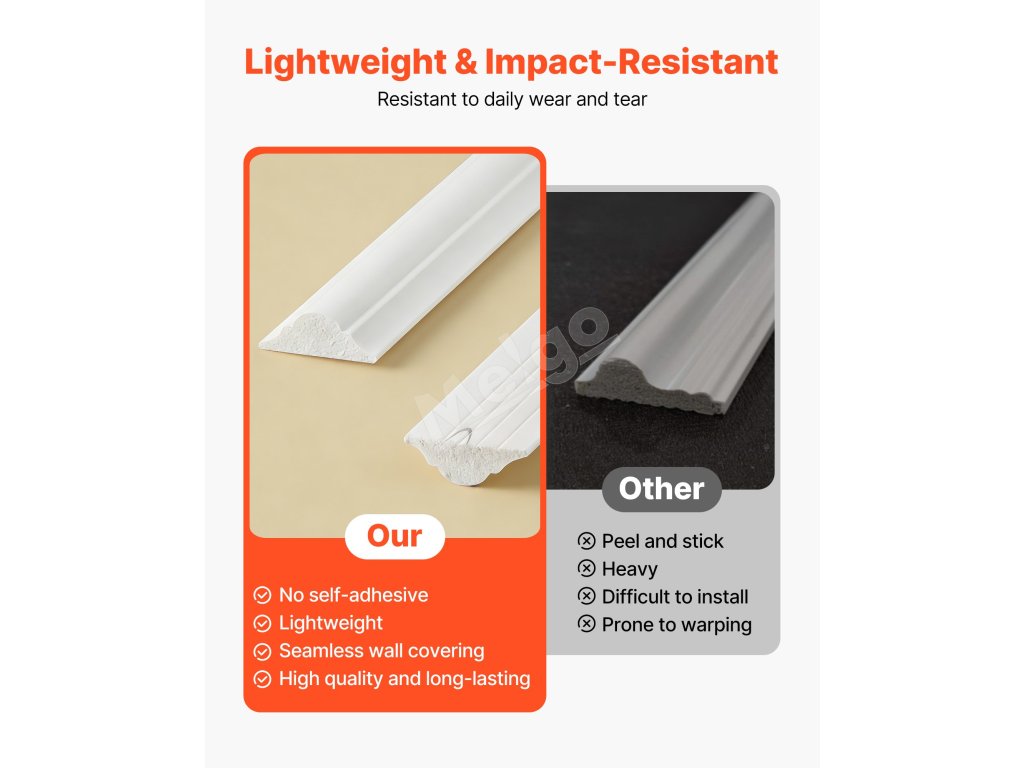Premeňte svoju izbu v okamihu. Elegantné línie vytvárajú jemné kontúry, ktoré dodávajú vášmu priestoru elegantný vzhľad bez toho, aby ste museli najímať dodávateľa, starať sa o neporiadok alebo tráviť týždne renováciou. Táto sada lišt na steny vám pomôže dosiahnuť ohromujúce výsledky bez námahy.