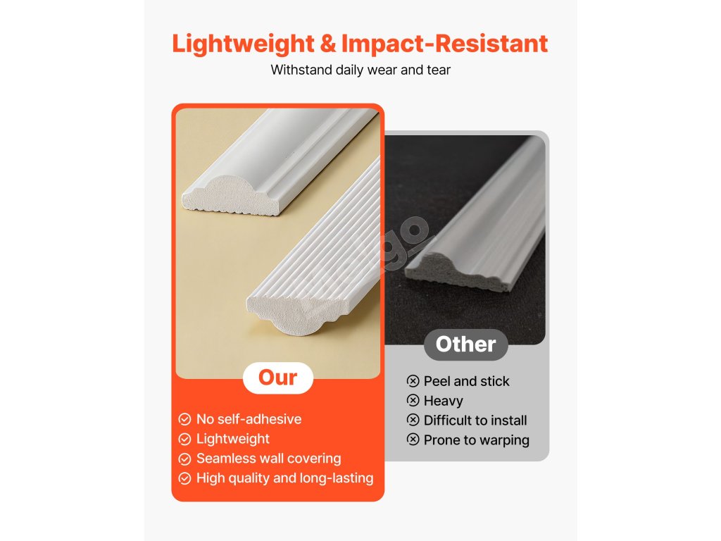 Naše lišty a obruby vynikajú svojimi prémiovými výhodami. Každý panel lišty je vyrobený z polystyrénu s vysokou hustotou a zachováva textúru tradičného dreva, pričom ponúka modernú odolnosť. Nedeformuje sa vplyvom vlhkosti, nepraská v dôsledku zmien teploty a nepoškodí sa počas prepravy.