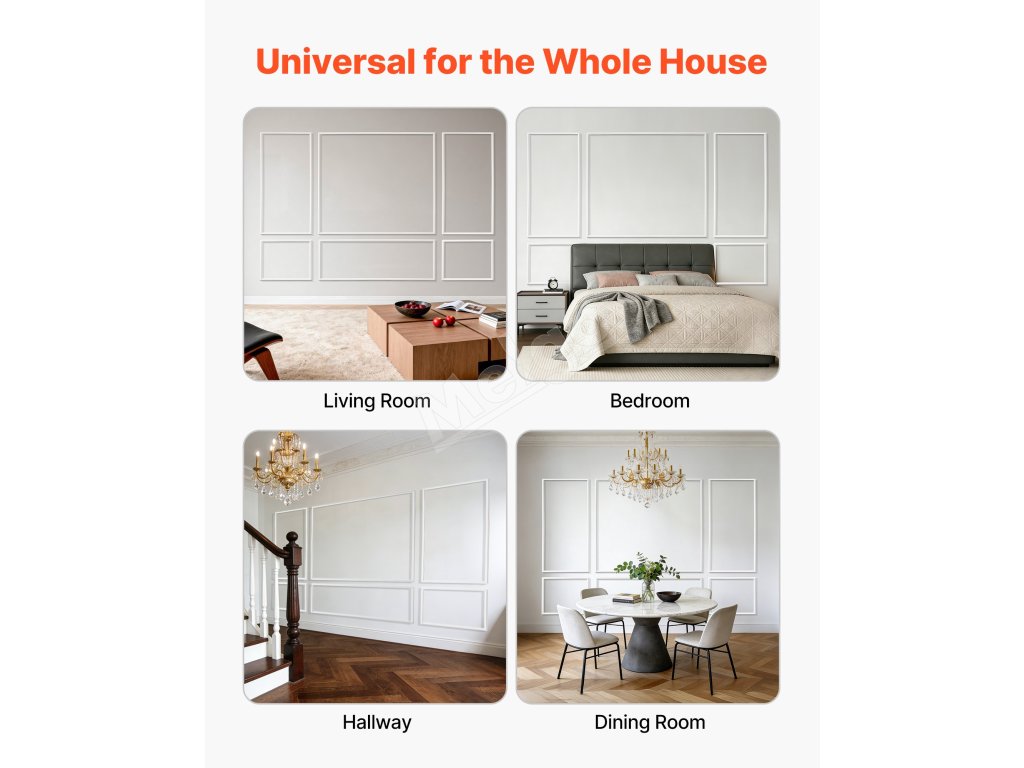 Premeňte svoju izbu v okamihu. Elegantné línie vytvárajú rafinované kontúry, ktoré dodávajú vášmu priestoru elegantný vzhľad bez toho, aby ste museli najať dodávateľa, starať sa o neporiadok alebo stráviť týždne renováciou. Táto sada lišt na steny vám pomôže dosiahnuť ohromujúce výsledky bez námahy.