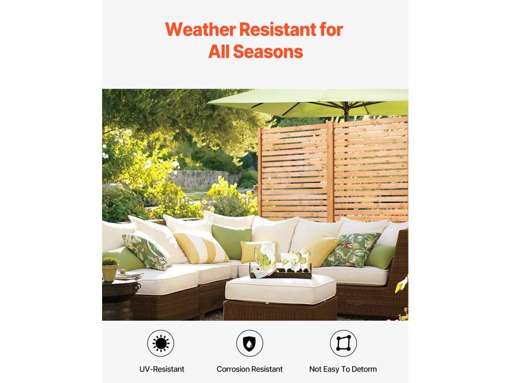 Táto drevená zástena na ochranu súkromia s rozmermi 36 × 76 palcov ponúka odolnú konštrukciu odolnú voči korózii, ktorá sa časom nedeformuje. Vďaka miernej odolnosti proti vetru je ideálna na použitie v záhradách, na terasách a dvoroch, kde vytvára súkromný priestor. Možno ju použiť aj v interiéri ako štýlovú priečku na rozdelenie priestorov.