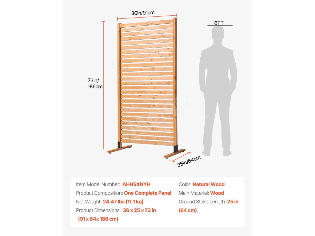 Drevená súkromná clona 36" × 76" samostatne stojaca na terasu