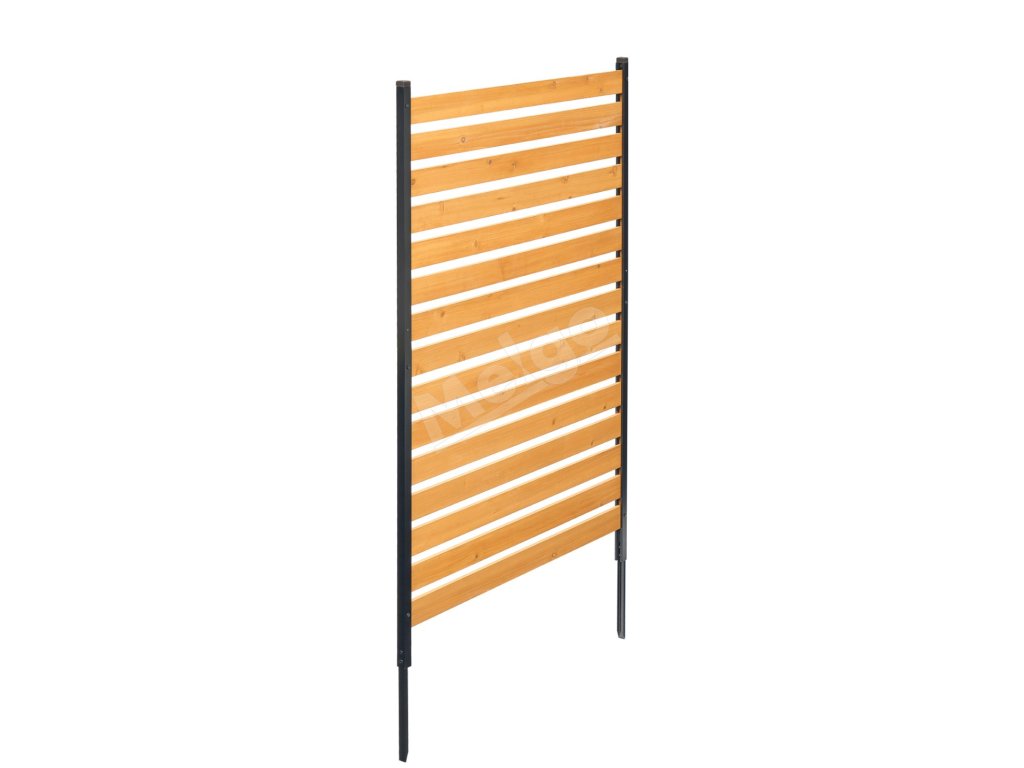 Drevený plot na ochranu súkromia, vyrobený z pevných drevených panelov a kovových kolíkov, odoláva teplu a poveternostným vplyvom bez praskania alebo deformácie.