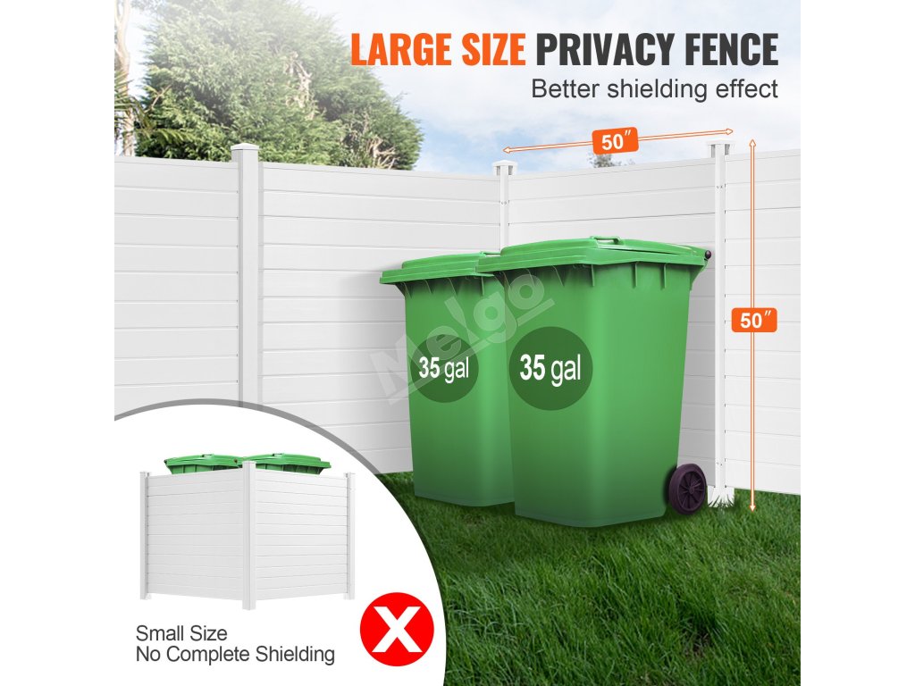 Aby sme ponúkli vynikajúce pokrytie, naše panely majú rozmery 50 × 50 palcov. Ideálne na úkryt väčších zariadení alebo objektov a výrazné zvýšenie súkromia v ohradách dvorov. Táto konštrukcia s plným pokrytím účinne blokuje vonkajší hluk a zabraňuje nežiaducemu rušeniu zo strany okoloidúcich.