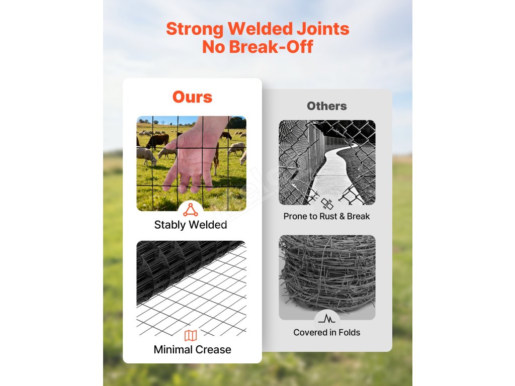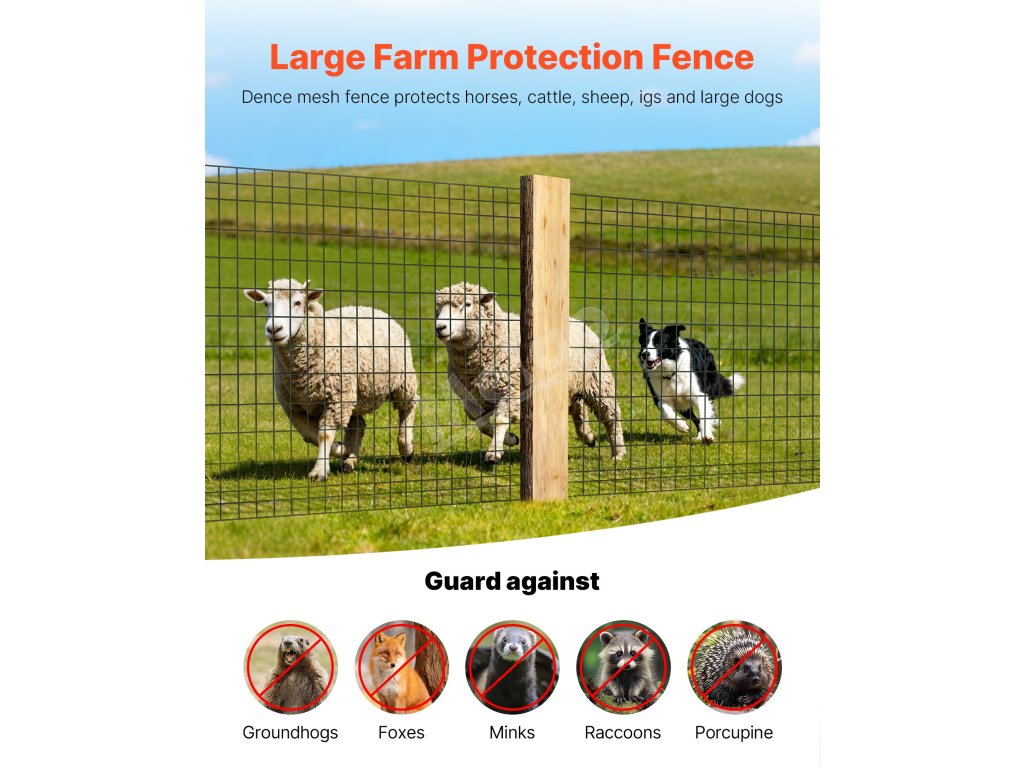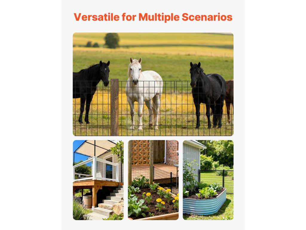 Toto oplotenie farmy možno použiť ako klietky pre zvieratá, záhradné ohrady alebo dokonca ako dekoratívne či umelecké zariadenia. Vytvorte bezpečnú zónu v jednom rolovacom kroku. Je ideálny na chov hospodárskych zvierat, záhradkárčenie alebo všeobecné vonkajšie zabezpečenie