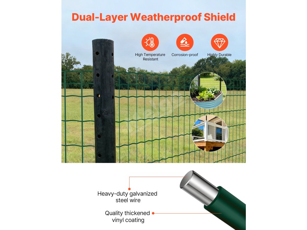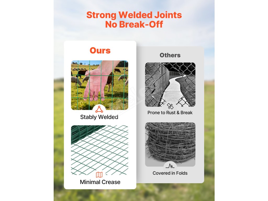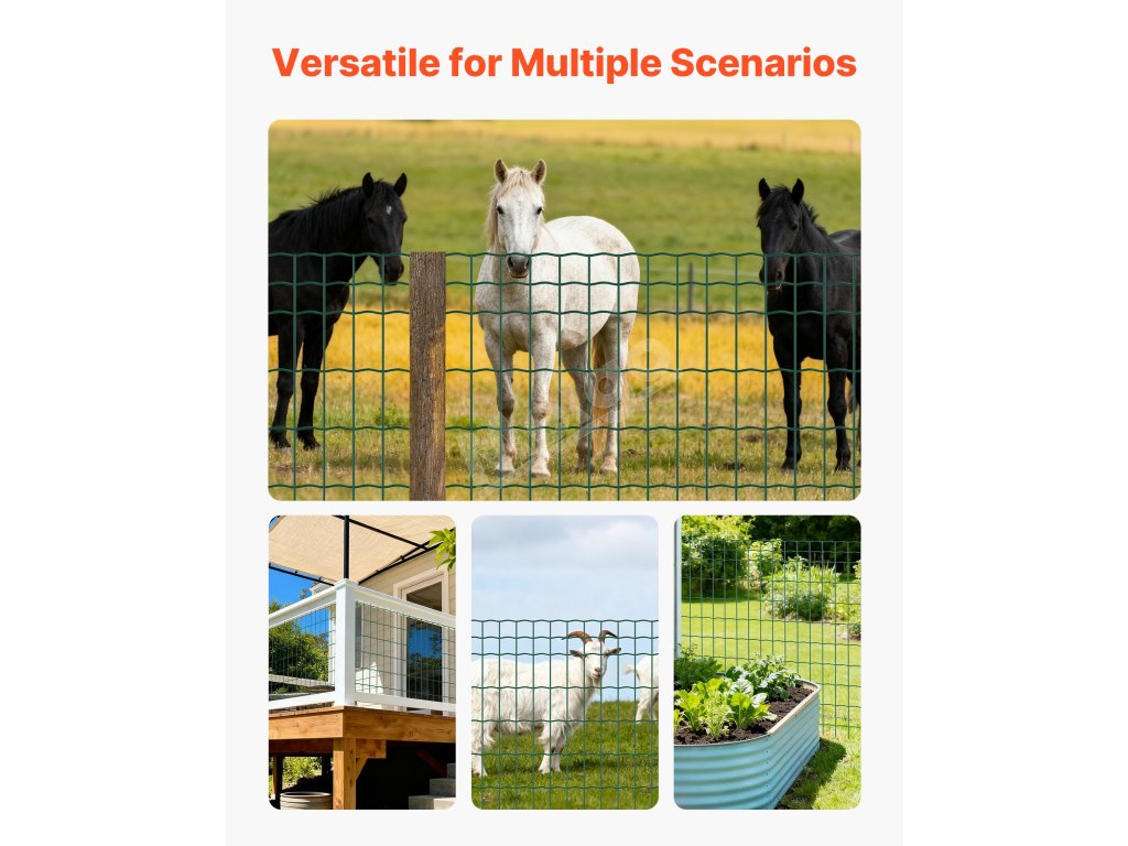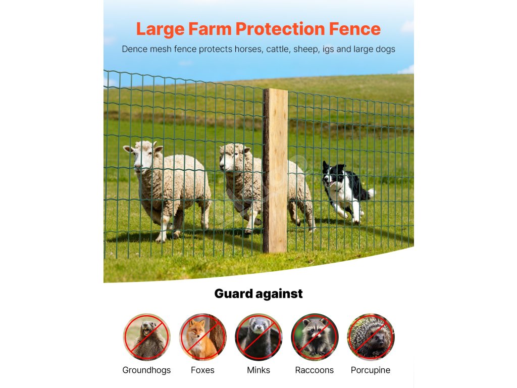 Toto oplotenie farmy možno použiť ako klietky pre zvieratá, záhradné ohrady alebo dokonca ako dekoratívne či umelecké zariadenia. Vytvorte bezpečnú zónu v jednom rolovacom kroku. Je ideálny na chov hospodárskych zvierat, záhradkárčenie alebo všeobecné vonkajšie zabezpečenie