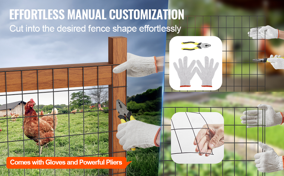 Táto rolka plotu z drôtu pre kurčatá je pevná a pružná. Na strihanie a inštaláciu použite priložené rukavice a silné kliešte. Podporuje prispôsobenie na rôzne aplikácie.