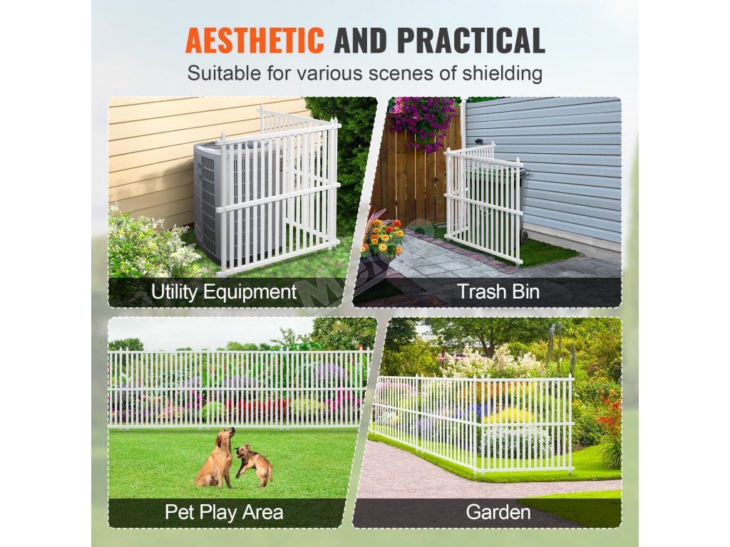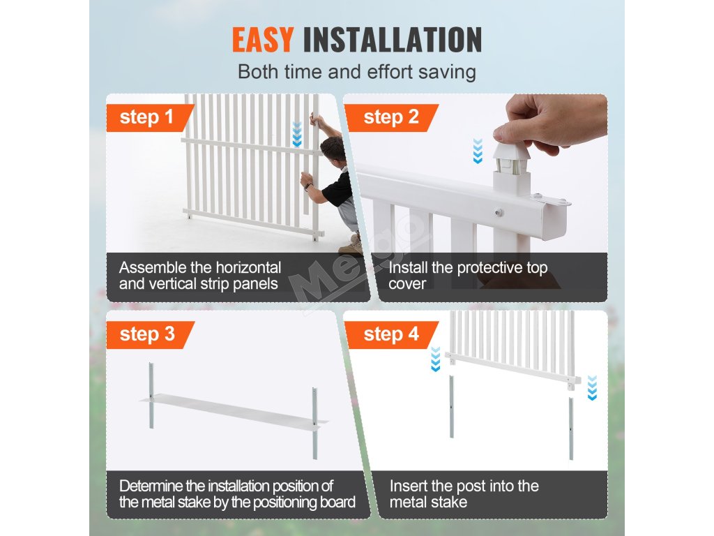 Vinylové plotové panely na ochranu súkromia, ktoré sú súčasťou balenia, sú dodávané s príslušenstvom a podrobnými pokynmi, takže ich možno rýchlo nainštalovať podľa podrobných pokynov. Kovové kolíky nahrádzajú plastové, čím sa zvyšuje celková robustnosť. Ochranné krytky v tvare dáždnika môžu znížiť hromadenie vody.