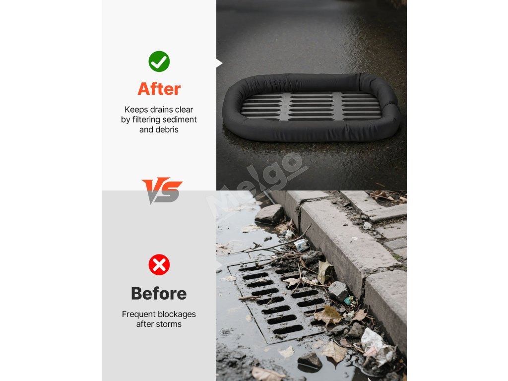 Táto ponožka proti bahnu umožňuje prietok vody a zároveň blokuje piesok, lístie a odpad. Je ideálna na zachytávanie nečistôt po daždi.