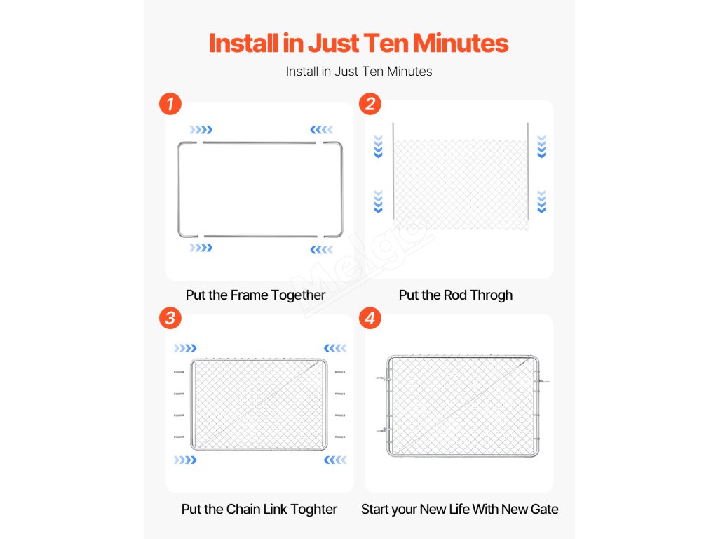 Brána z pletiva nastaviteľná 72×48 in pre 2.2-6 ft × 6 ft pozinkovaná