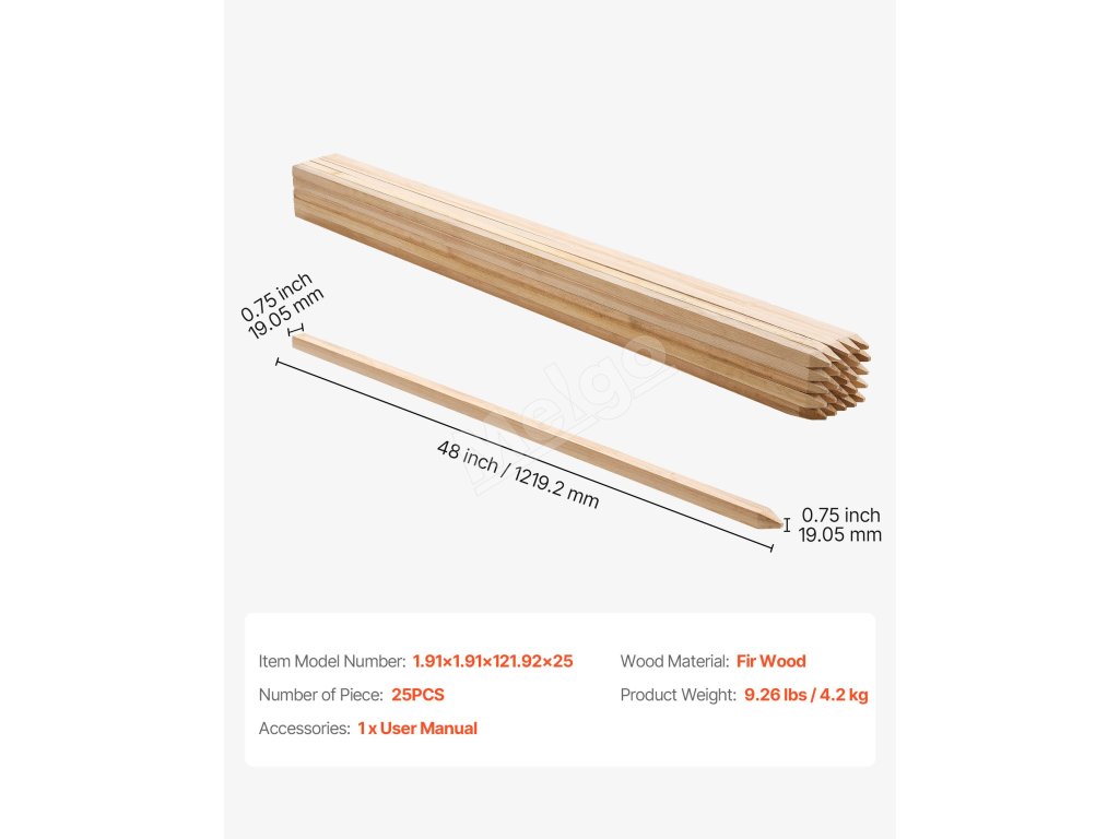 Drevené kolíky 25 ks 19.05×19.05×1219.2 mm z jedle s ostrou špičkou